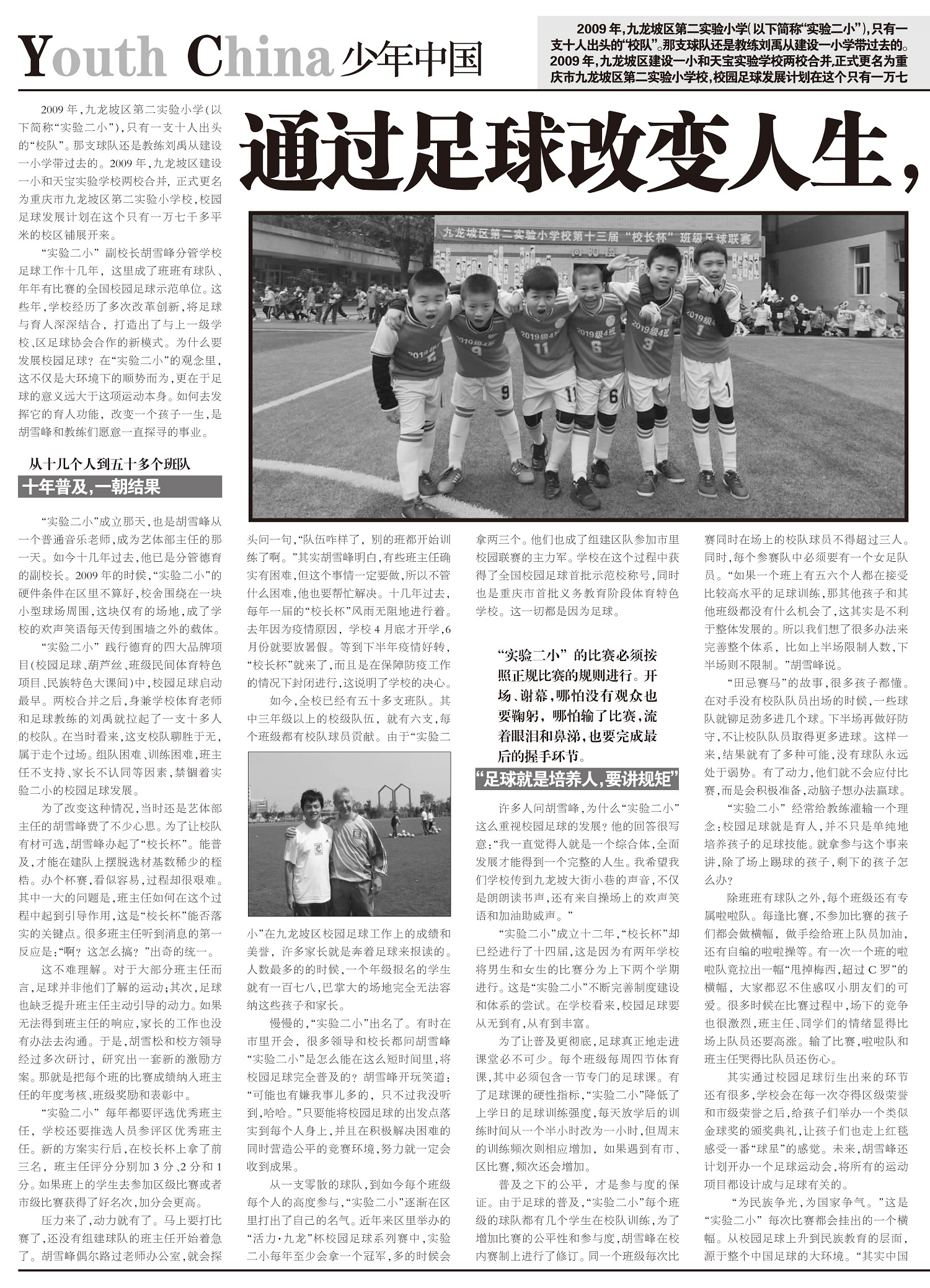 2009年,九龙坡区第二实验小学(以下简称“实验二小”),只有一支十人出头的“校队”。那支球队还是教...