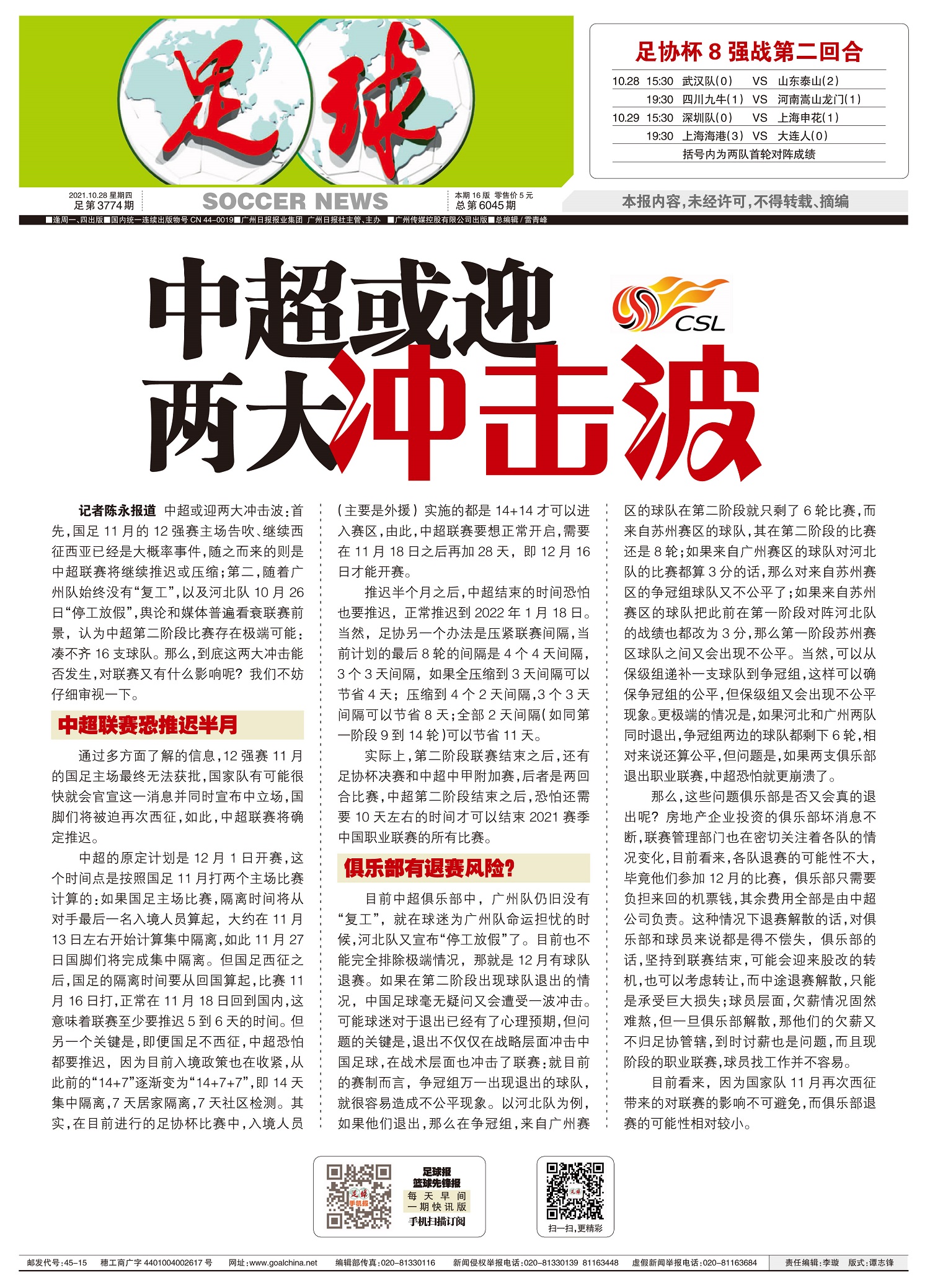 中超第二阶段赛程面临调整 方案未定,原则已定