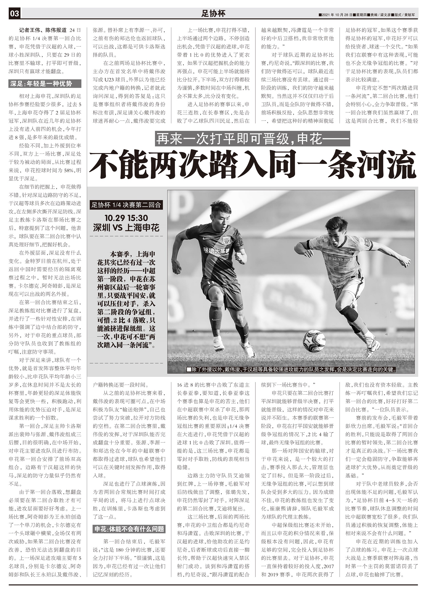 足协杯1/4决赛第二回合10.29 15:30深圳VS上海申花本赛季,上海申花其实已经有过一次这样的...