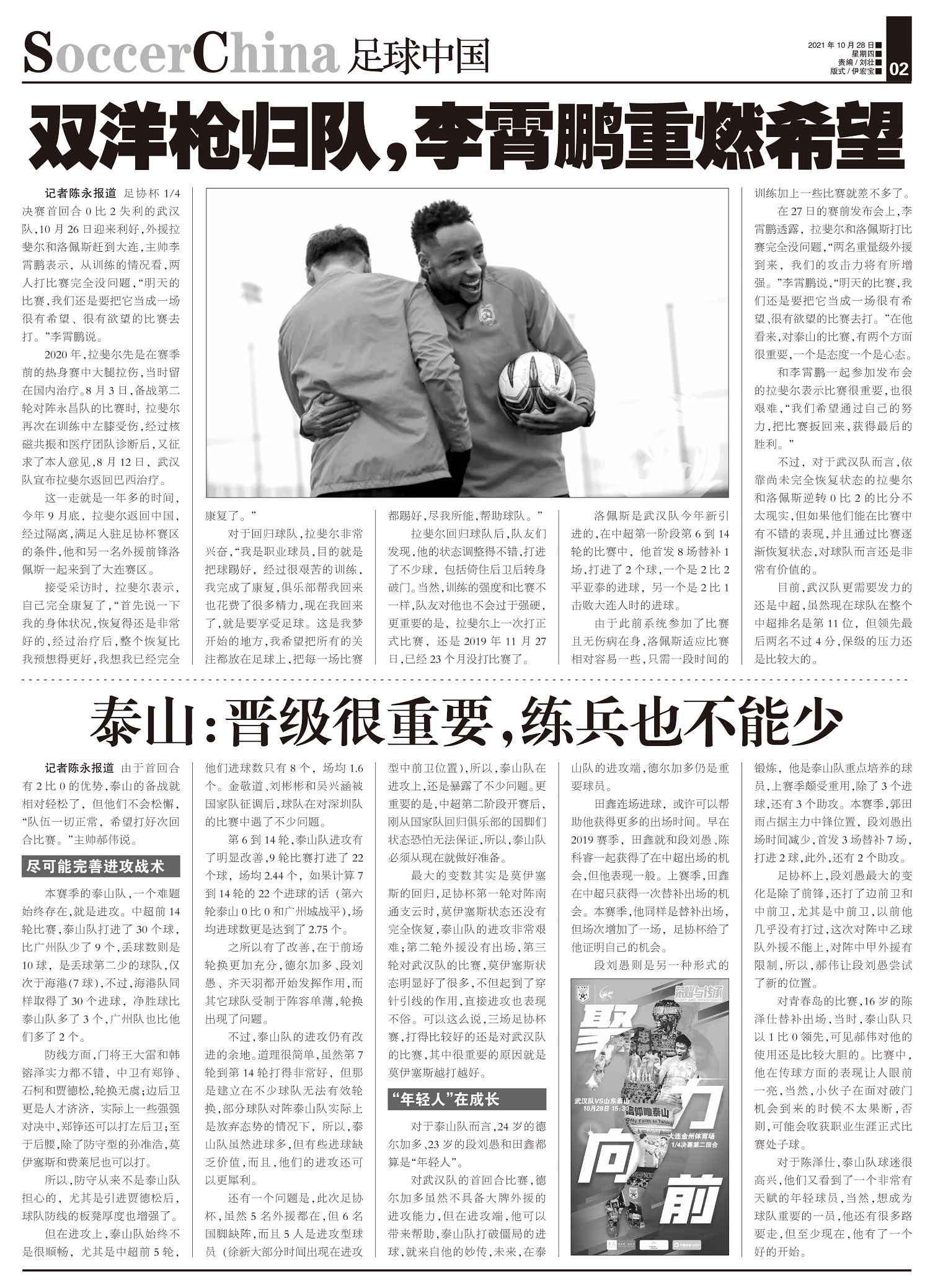 在河南嵩山龙门与四川九牛第一回合足协杯赛前两天,从英国回到中国、经历了21天隔离的周定洋与球队在上海...
