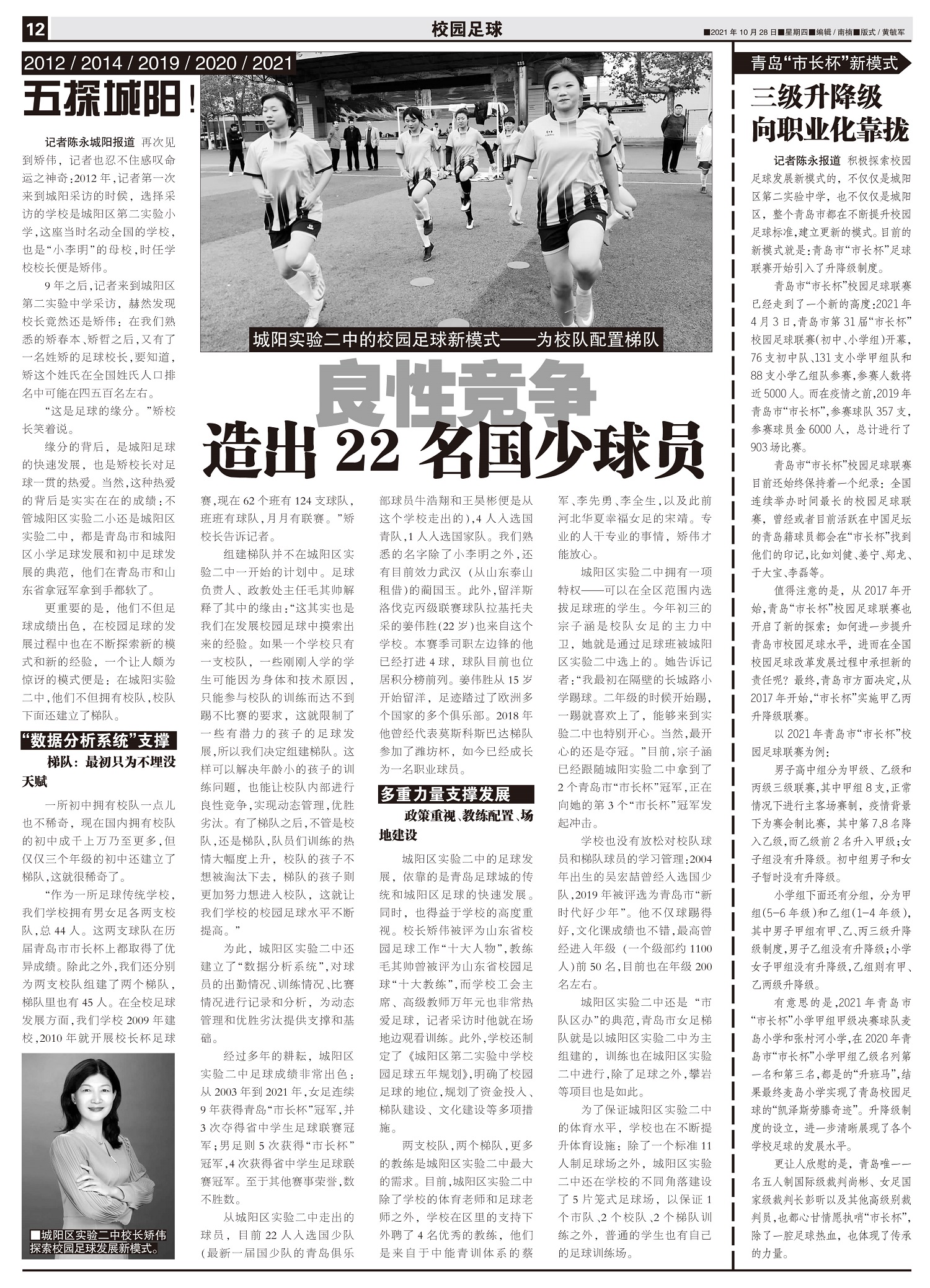 积极探索校园足球发展新模式的,不仅仅是城阳区第二实验中学,也不仅仅是城阳区,整个青岛市都在不断提升校...