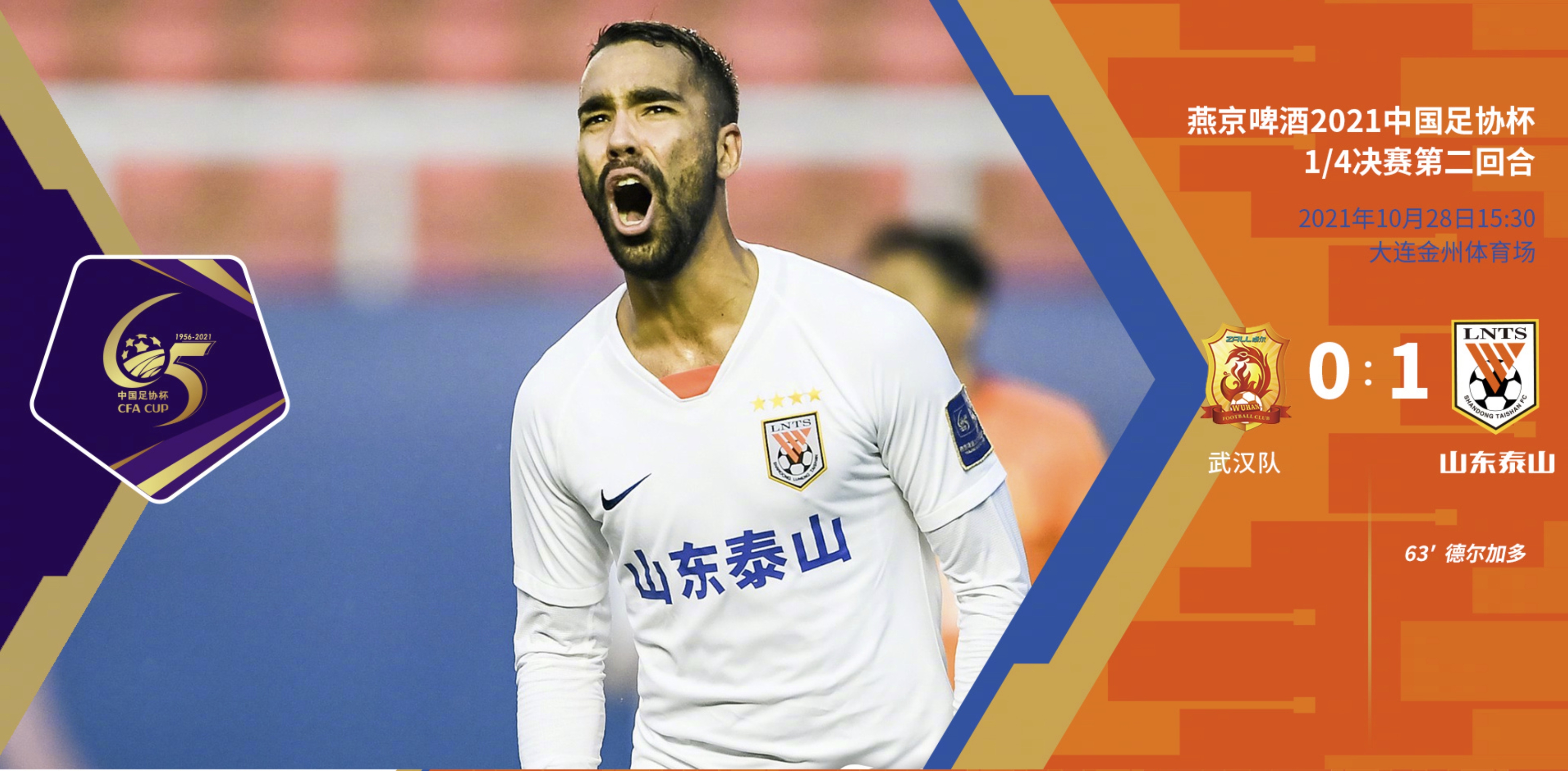 最终,没有意外,泰山队1比0击败武汉队,以3比0的总比分晋级足协杯四强。