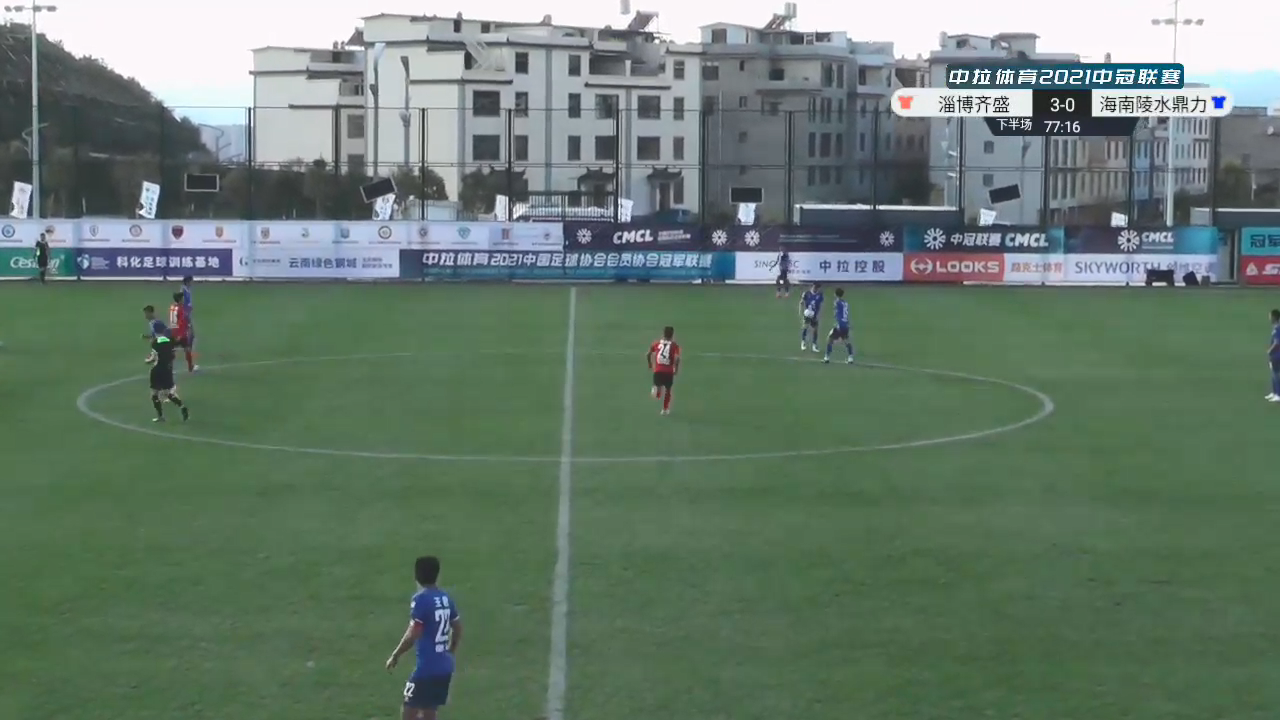 在另外一场同时进行的小组赛淄博齐盛对阵海南陵水鼎力的比赛,比赛开始后,淄博齐盛在上半场开局阶段就取得进球,场上比分 1比0,随后在下半场开场阶段,淄博齐盛队再次取得进球,将比分改为 2比0。就在另外一场梅州梅县球乡在比赛进行到 70 分钟取得了 1比0 领先优势后,本场比赛第75 分钟,出现了一个令人不可思议的进球,海南陵水队门将一个原本很简单处理球,被还离球10米远的对方球员将球抢下后完成空门得分,场上比分变为3比0。本场比赛,海南陵水鼎力并未展现出前两场比赛的取胜欲望,在比赛落后三球的情况下,在本方半场还玩起颠球。最终,比分就像赛前预定好了的一样,淄博齐盛以3比0战胜海南陵水鼎力。两支队伍双双出线,梅州梅县球乡在同积6分情况下因少一个进球而被淘汰出局。”