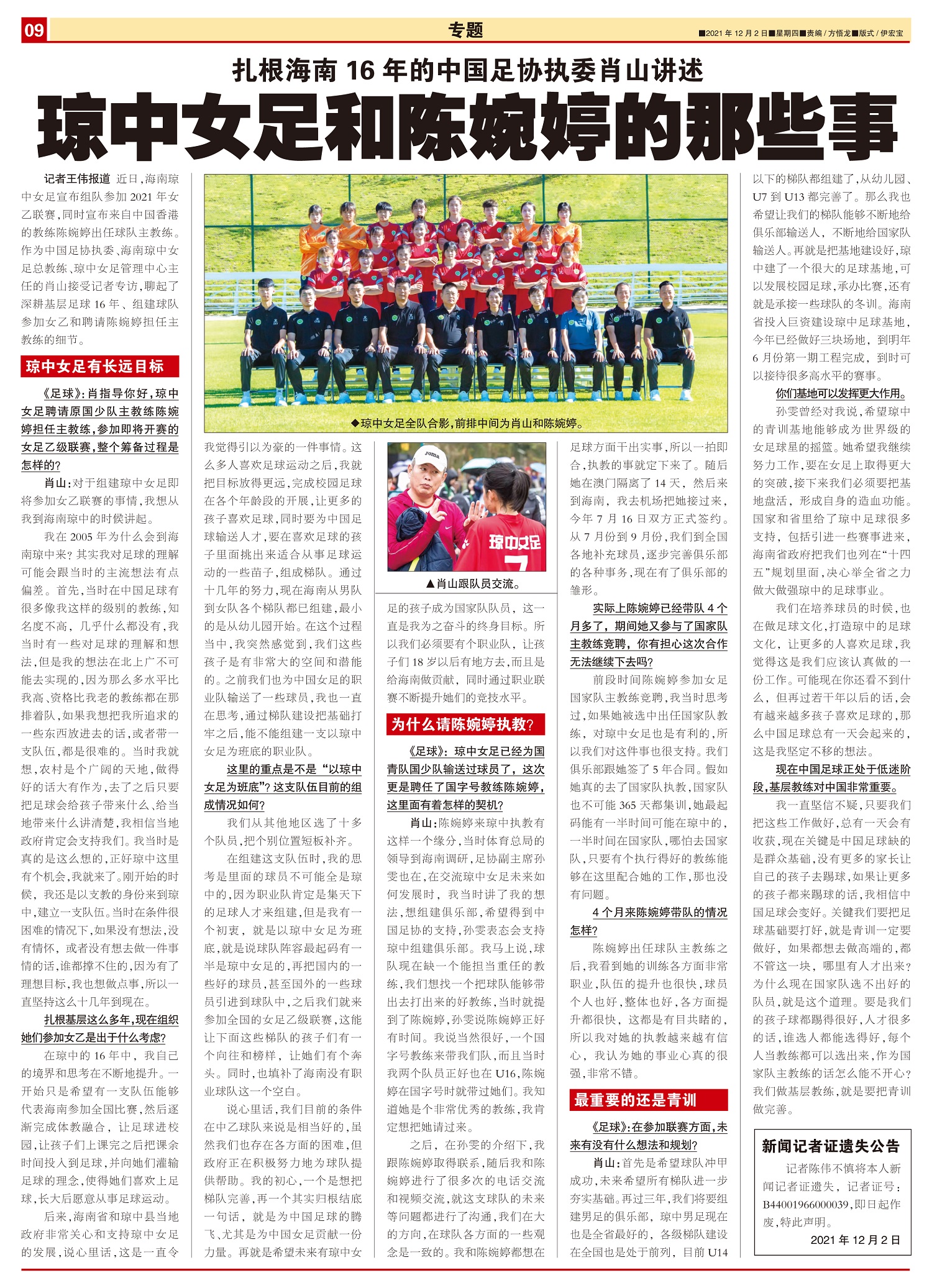 扎根海南16年的中国足协执委肖山讲述 琼中女足和陈婉婷的那些事