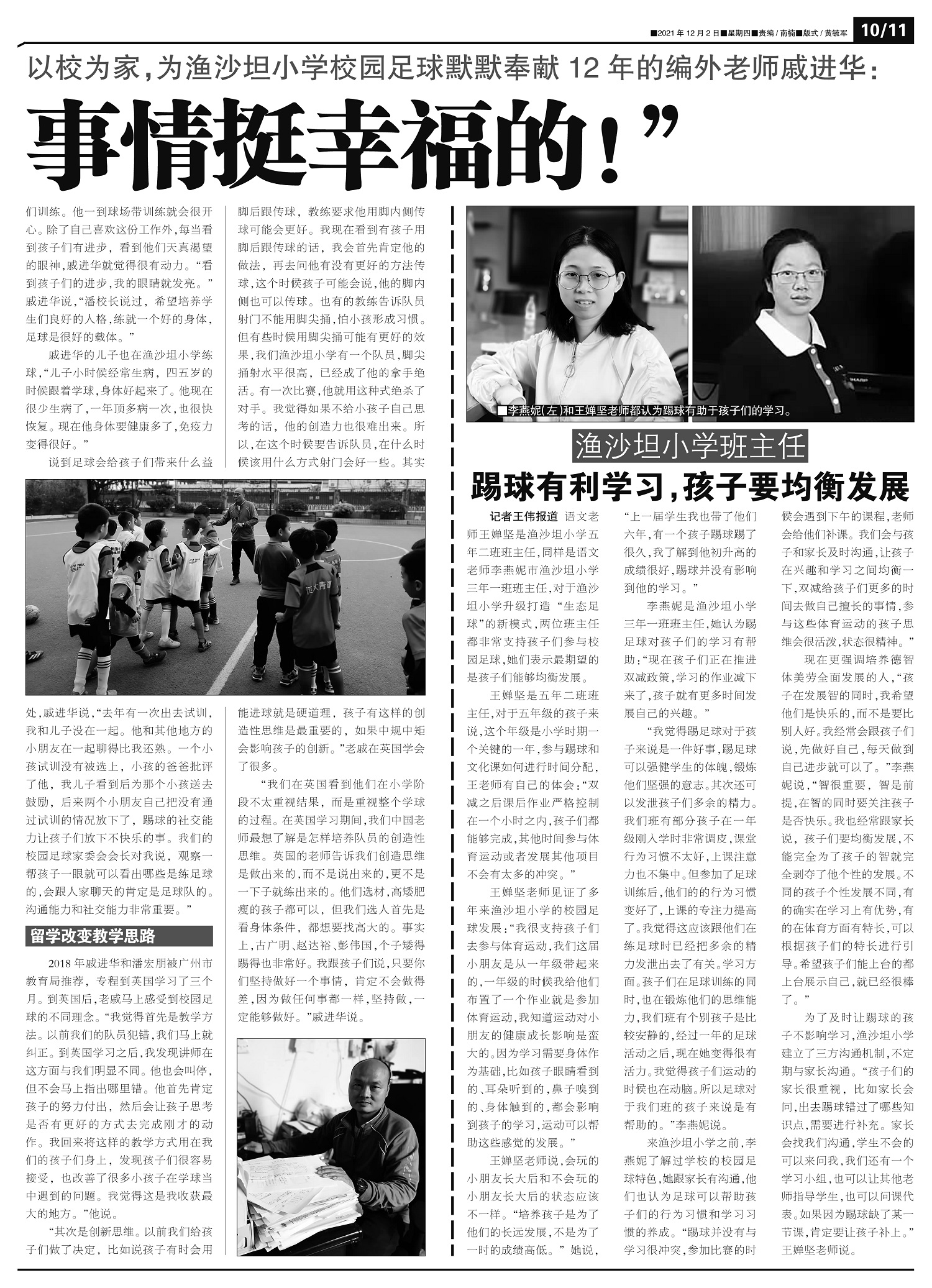 渔沙坦小学班主任 踢球有利学习,孩子要均衡发展