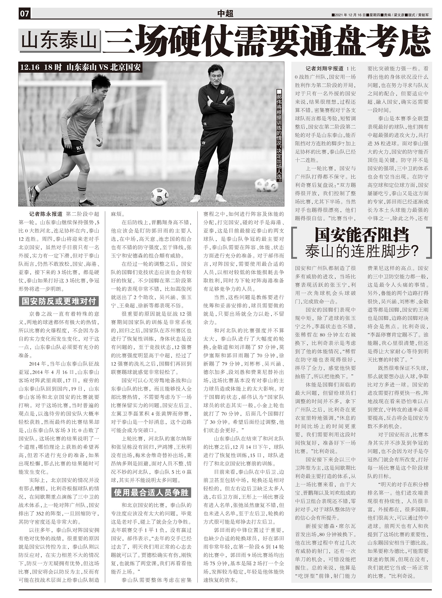 12月13日,广州队0比1不敌北京国安,这是广州队第二阶段的首秀,也是郑智执教广州队的首秀。