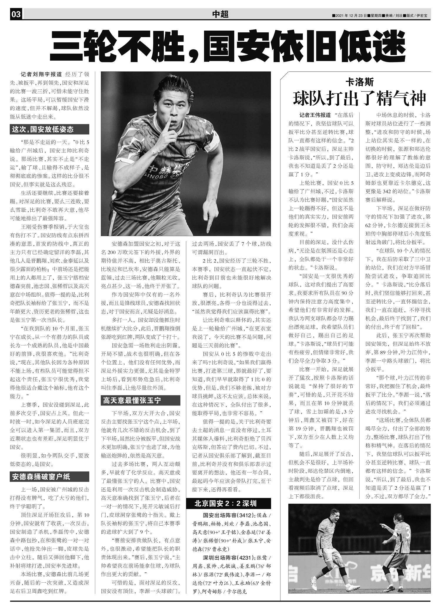 “在落后的情况下,我坚信球队可以扳平比分甚至逆转比赛,球队一直都有这样的信念。”2比2战平国安后,深...