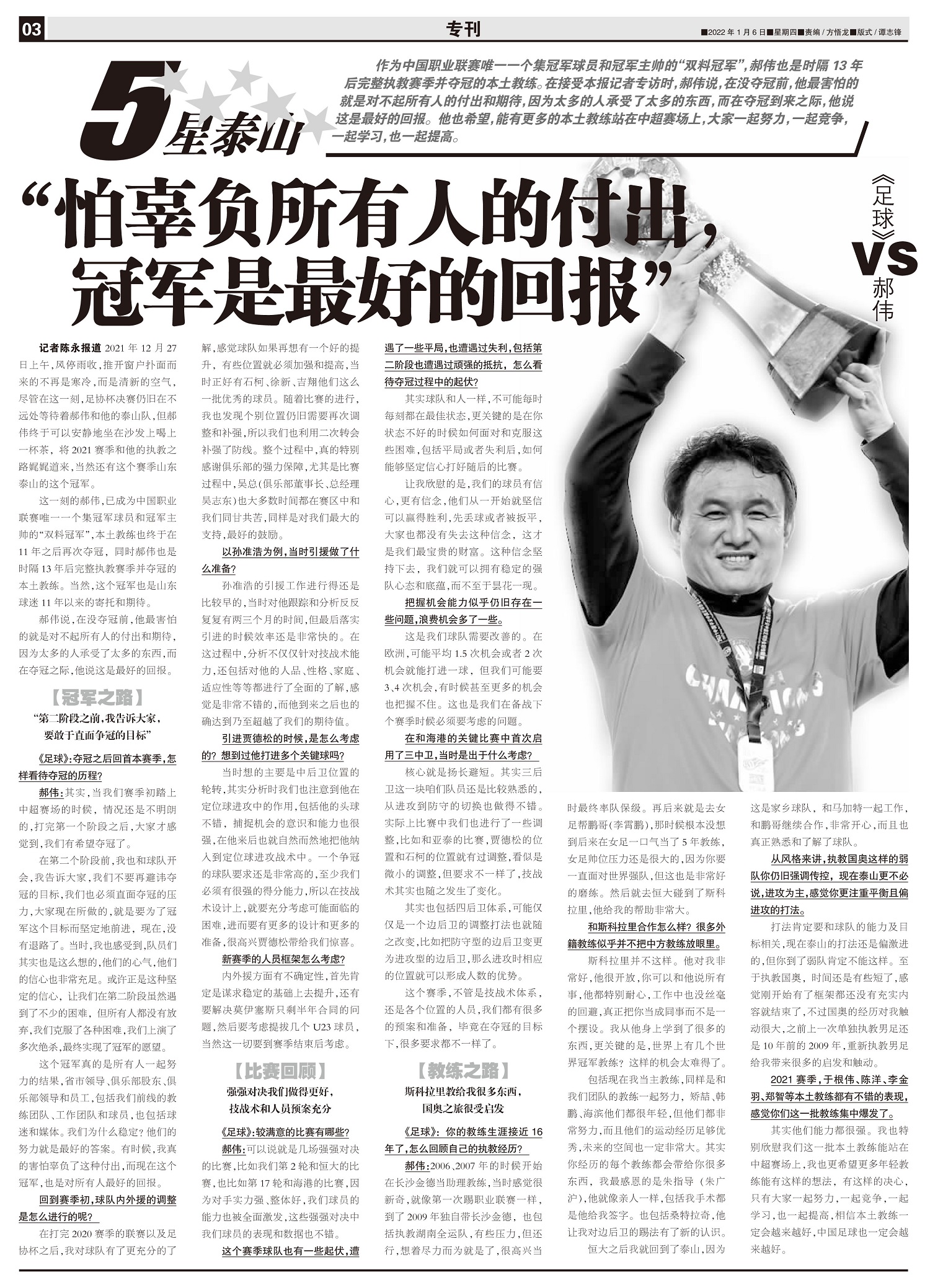 5星泰山作为中国职业联赛唯一一个集冠军球员和冠军主帅的“双料冠军”,郝伟也是时隔13年后完整执教赛季...