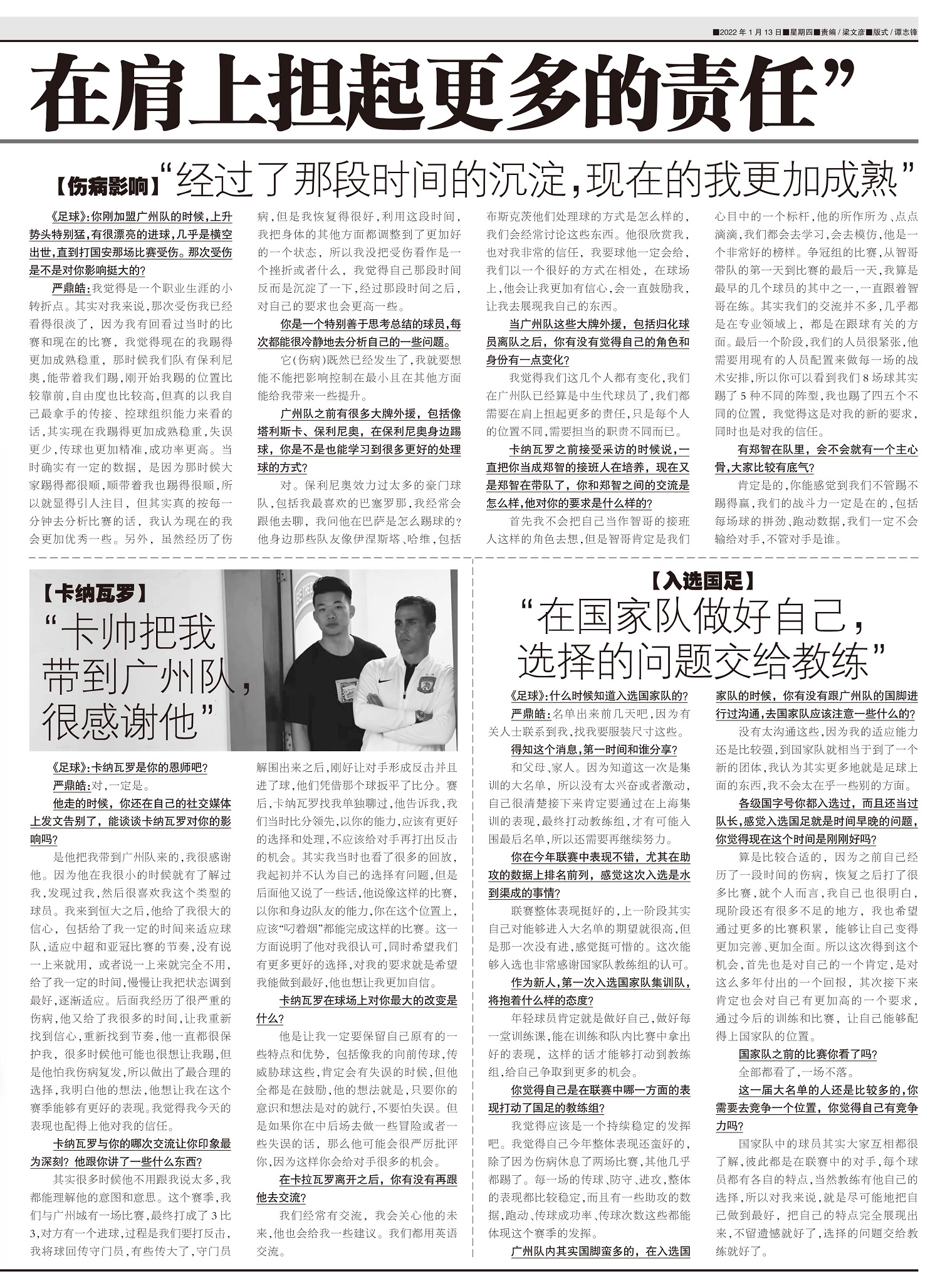 《足球》:你刚加盟广州队的时候,上升势头特别猛,有很漂亮的进球,几乎是横空出世,直到打国安那场比赛受...