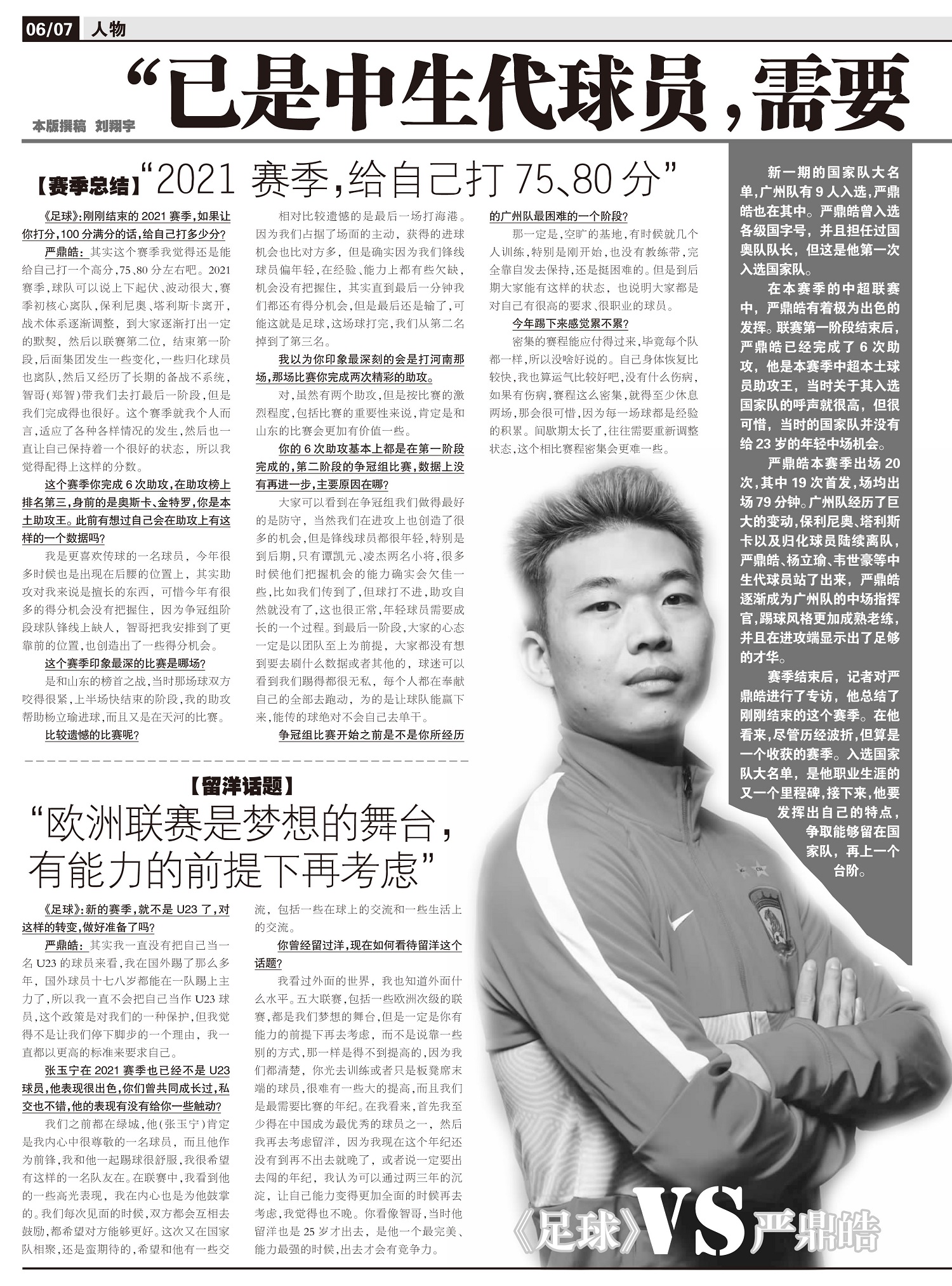 新一期的国家队大名单,广州队有9人入选,严鼎皓也在其中。严鼎皓曾入选各级国字号,并且担任过国奥队队长...