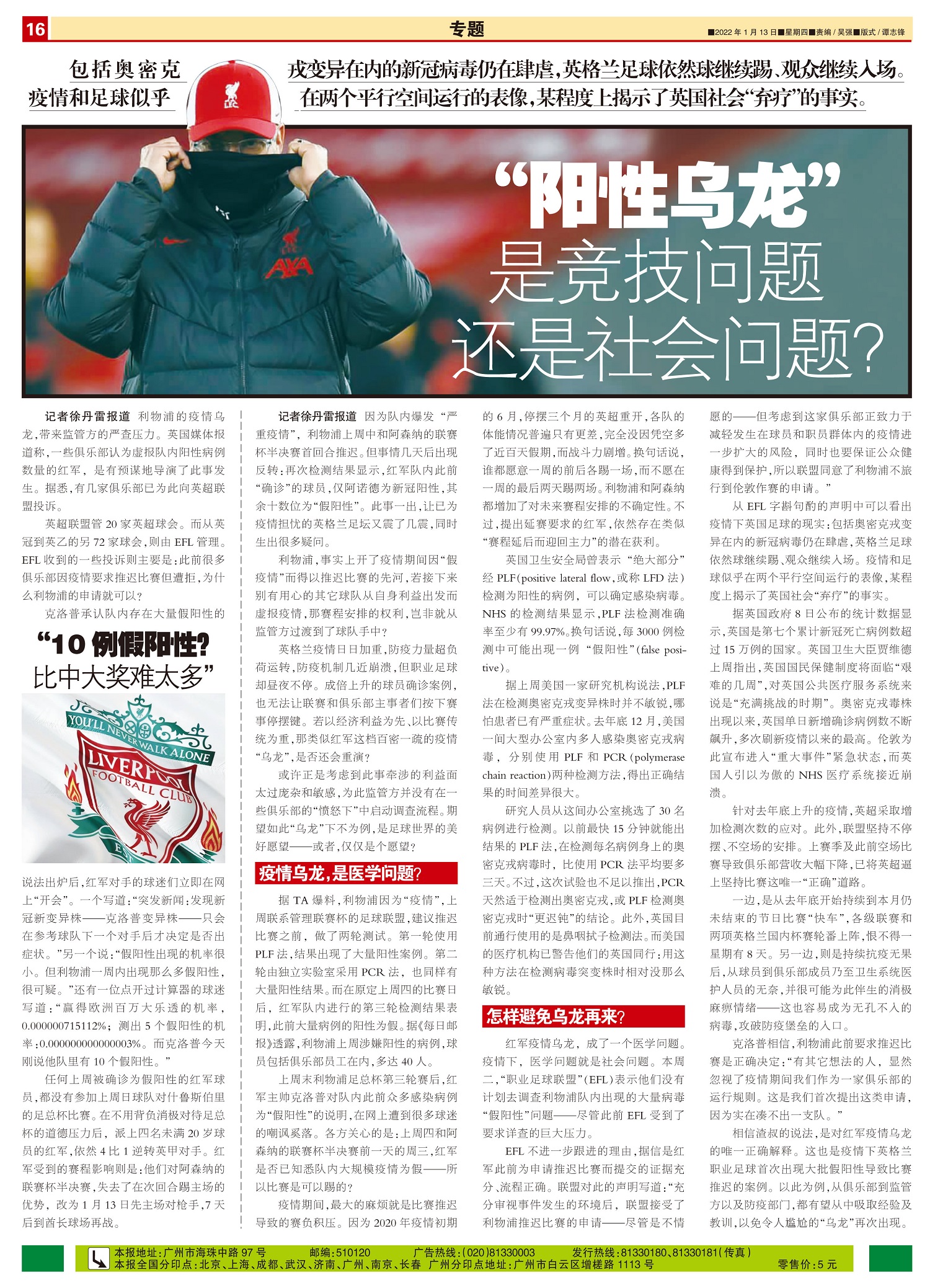 利物浦的疫情乌龙,带来监管方的严查压力。英国媒体报道称,一些俱乐部认为虚报队内阳性病例数量的红军,是...