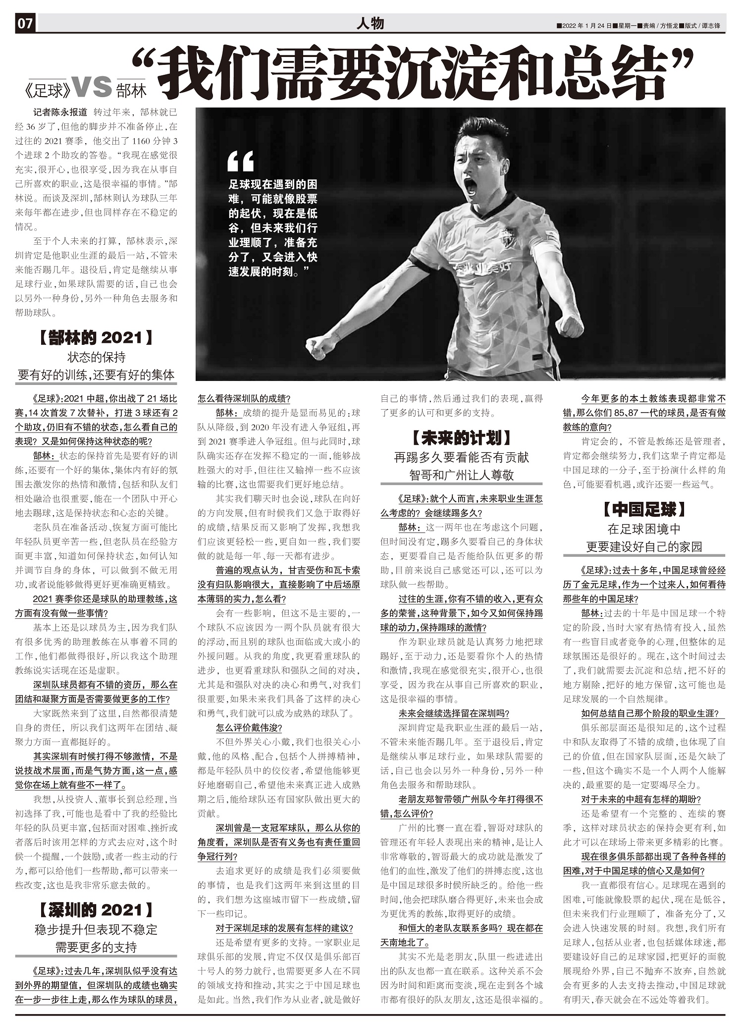 《足球》VS郜林 “我们需要沉淀和总结”