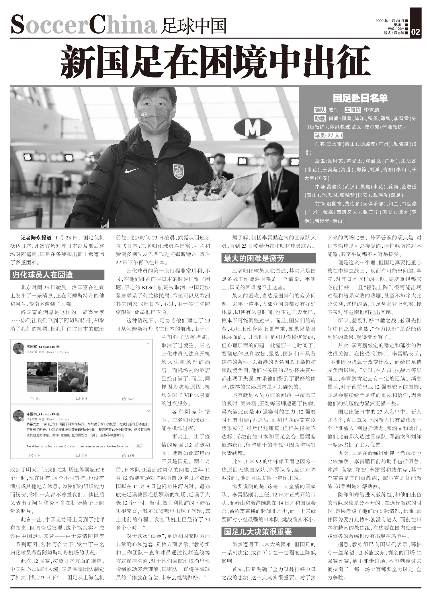 新国足在困境中出征