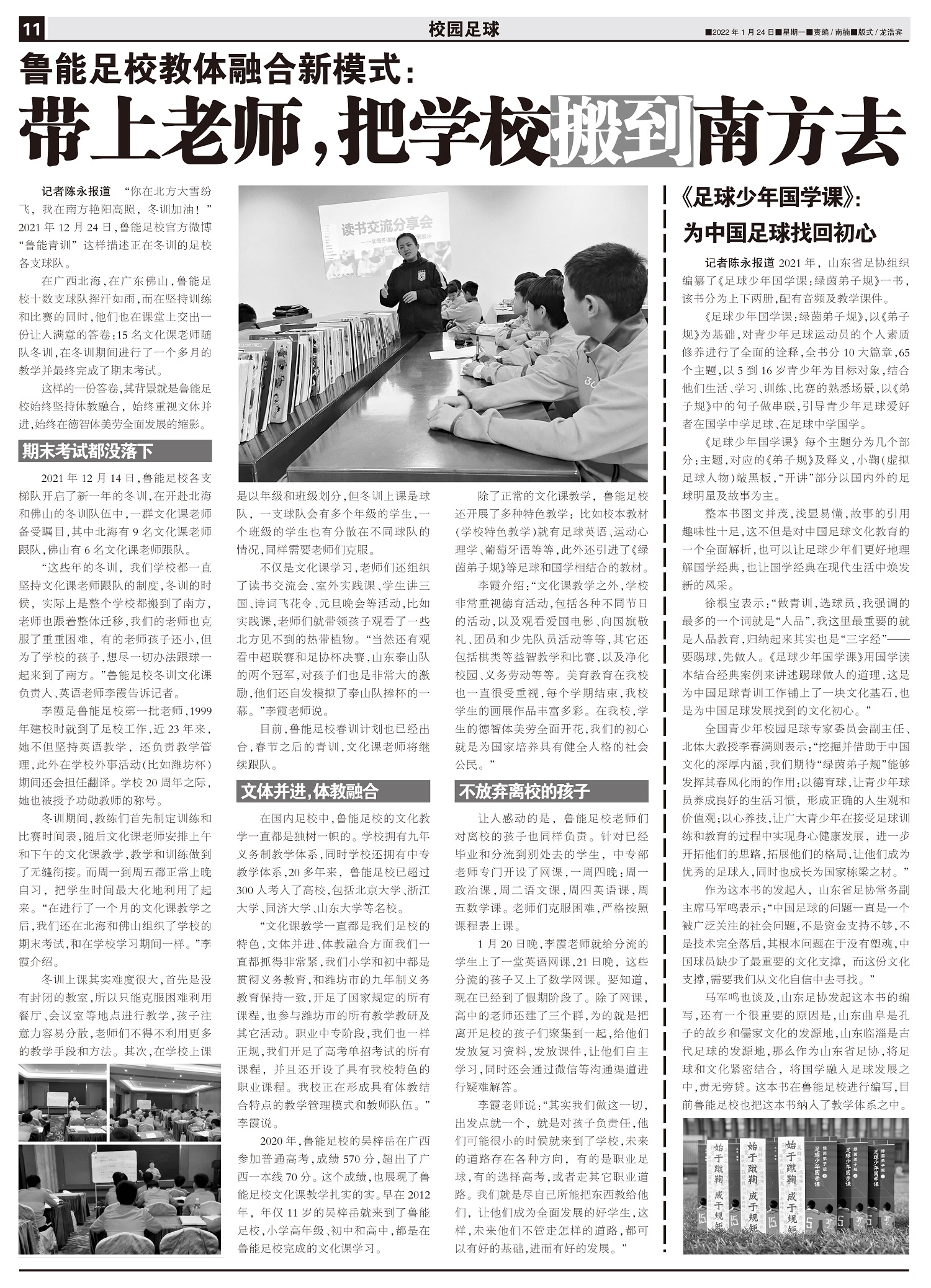 鲁能足校教体融合新模式: 带上老师,把学校搬到南方去
