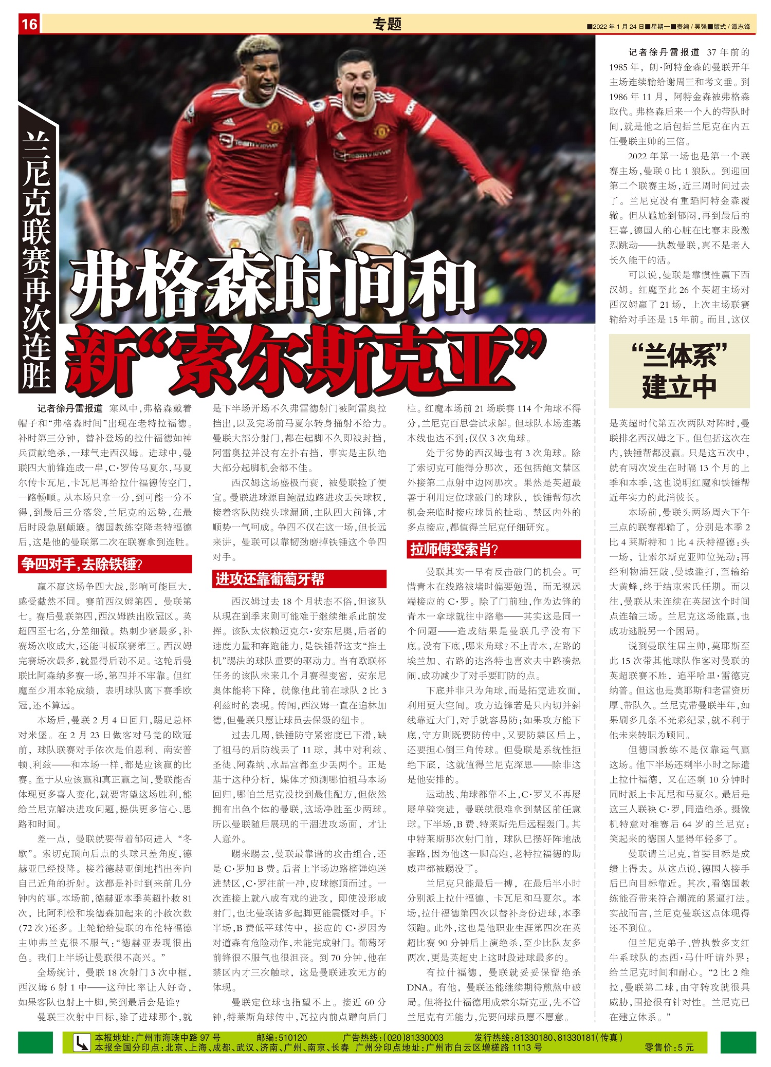 兰尼克联赛再次连胜 弗格森时间和新“索尔斯克亚”