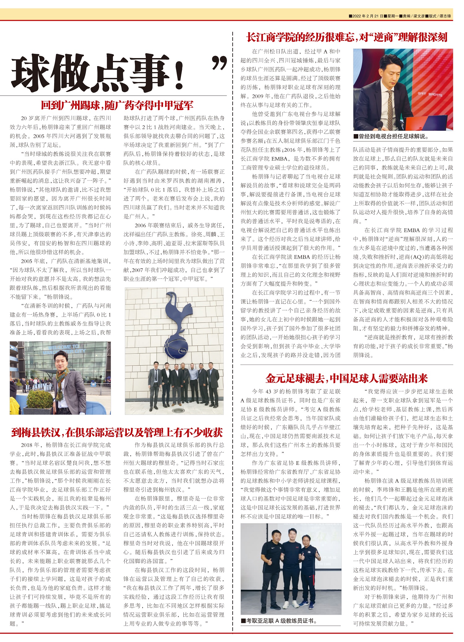 广东足球“杨家将”第三代杨朋锋: “有机会的话,想为广州足球做点事!”