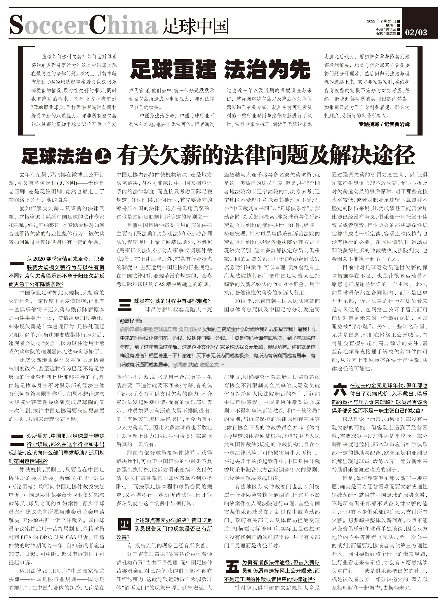 足球法治上 有关欠薪的法律问题及解决途径