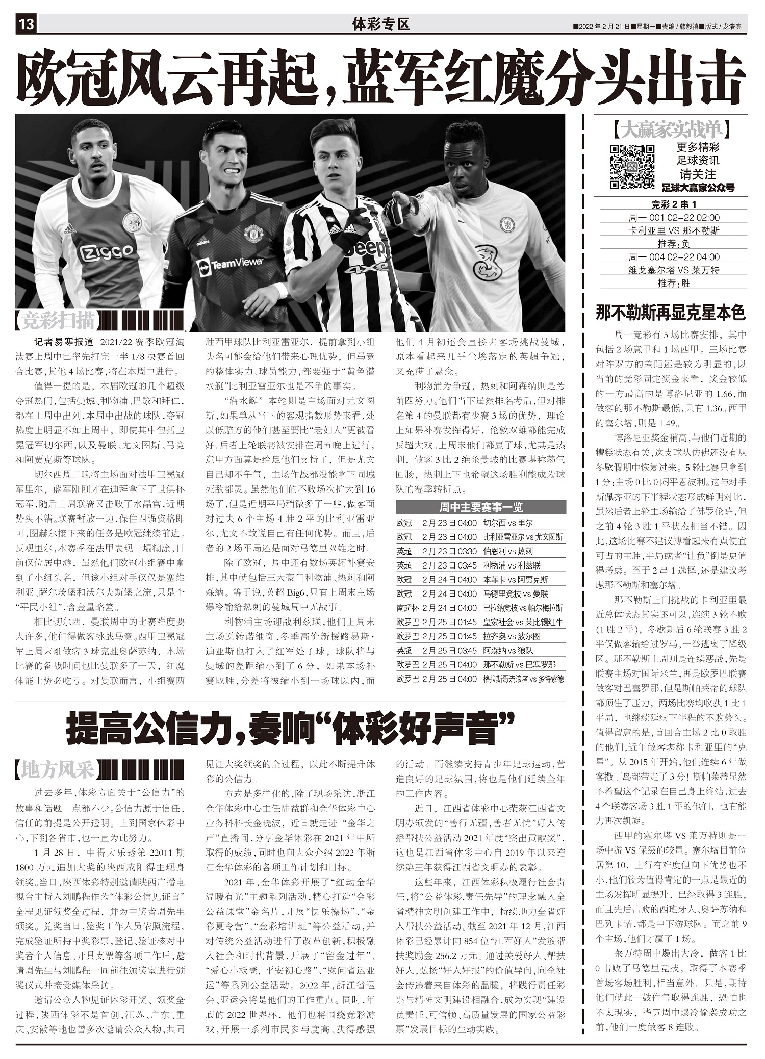 竞彩扫描 欧冠风云再起,蓝军红魔分头出击