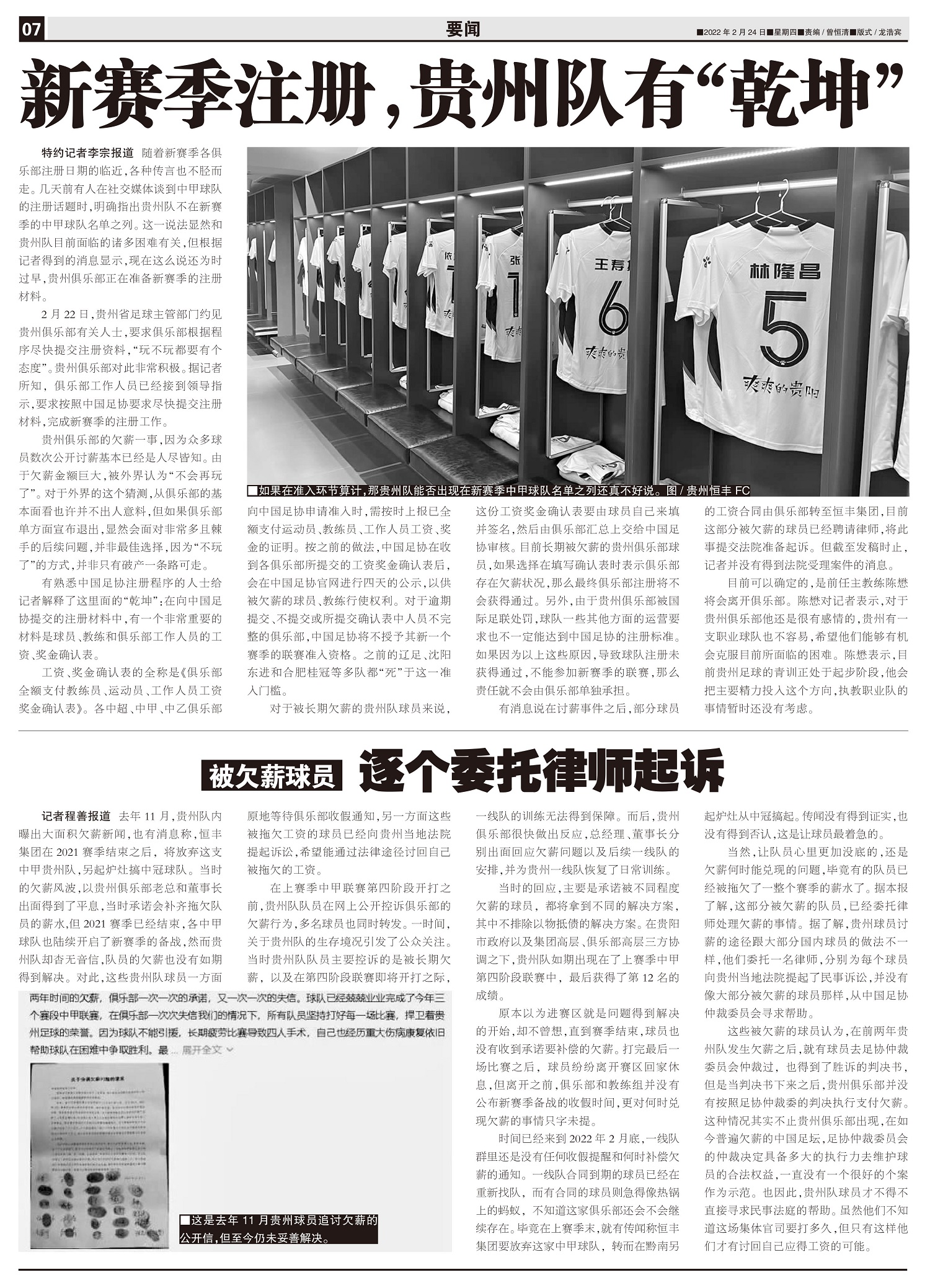 被欠薪球员 逐个委托律师起诉