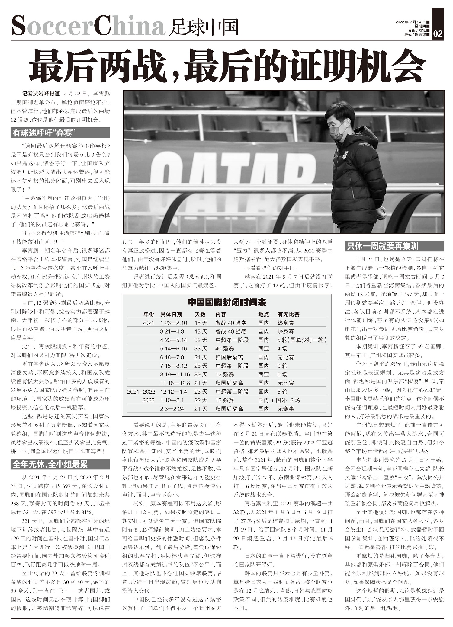 2月22日,李霄鹏二期国脚名单公布,舆论负面评论不少,但不管怎样,他们都必须完成最后的两场12强赛,...
