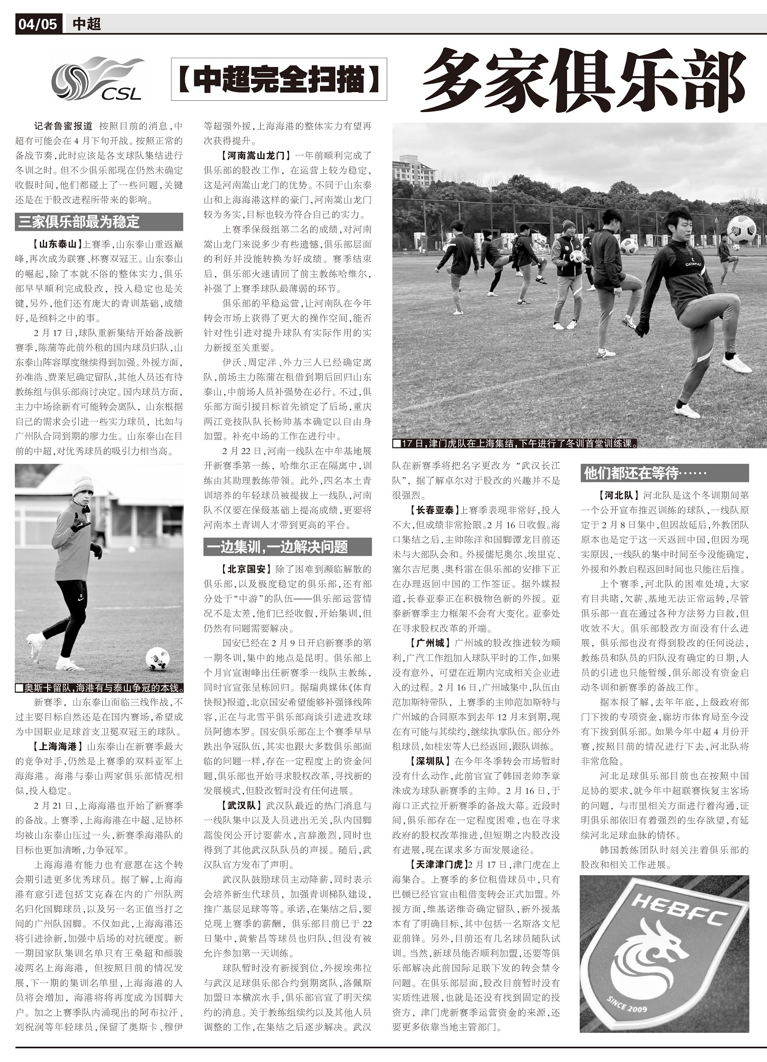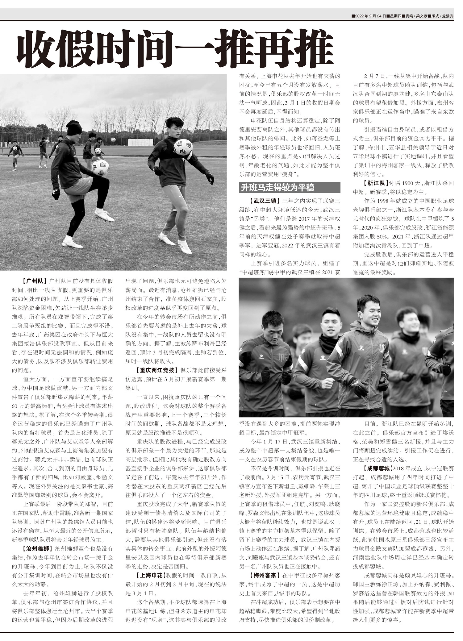 【中超完全扫描】 多家俱乐部收假时间一推再推