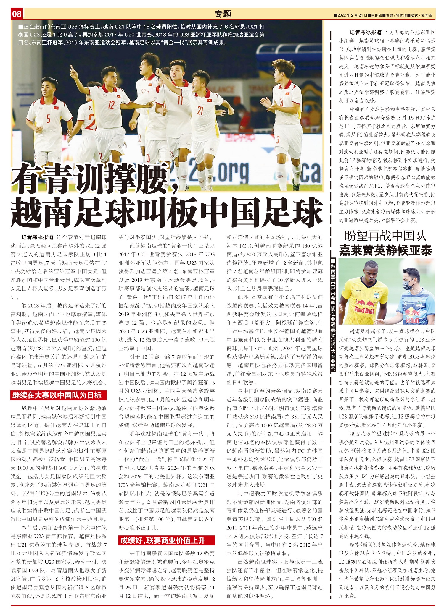 有青训撑腰,越南足球叫板中国足球
