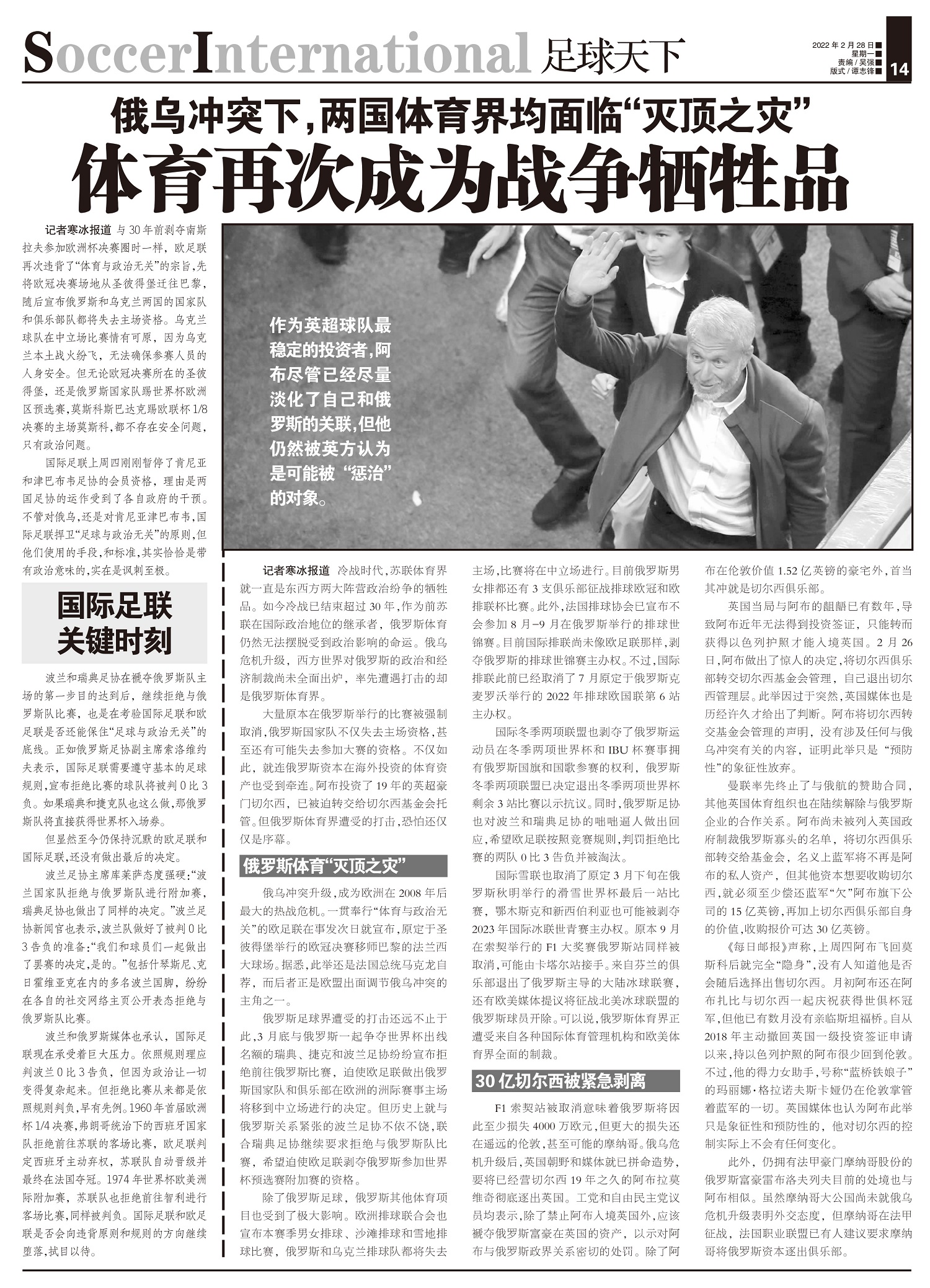 作为英超球队最稳定的投资者,阿布尽管已经尽量淡化了自己和俄罗斯的关联,但他仍然被英方认为是可能被“惩...