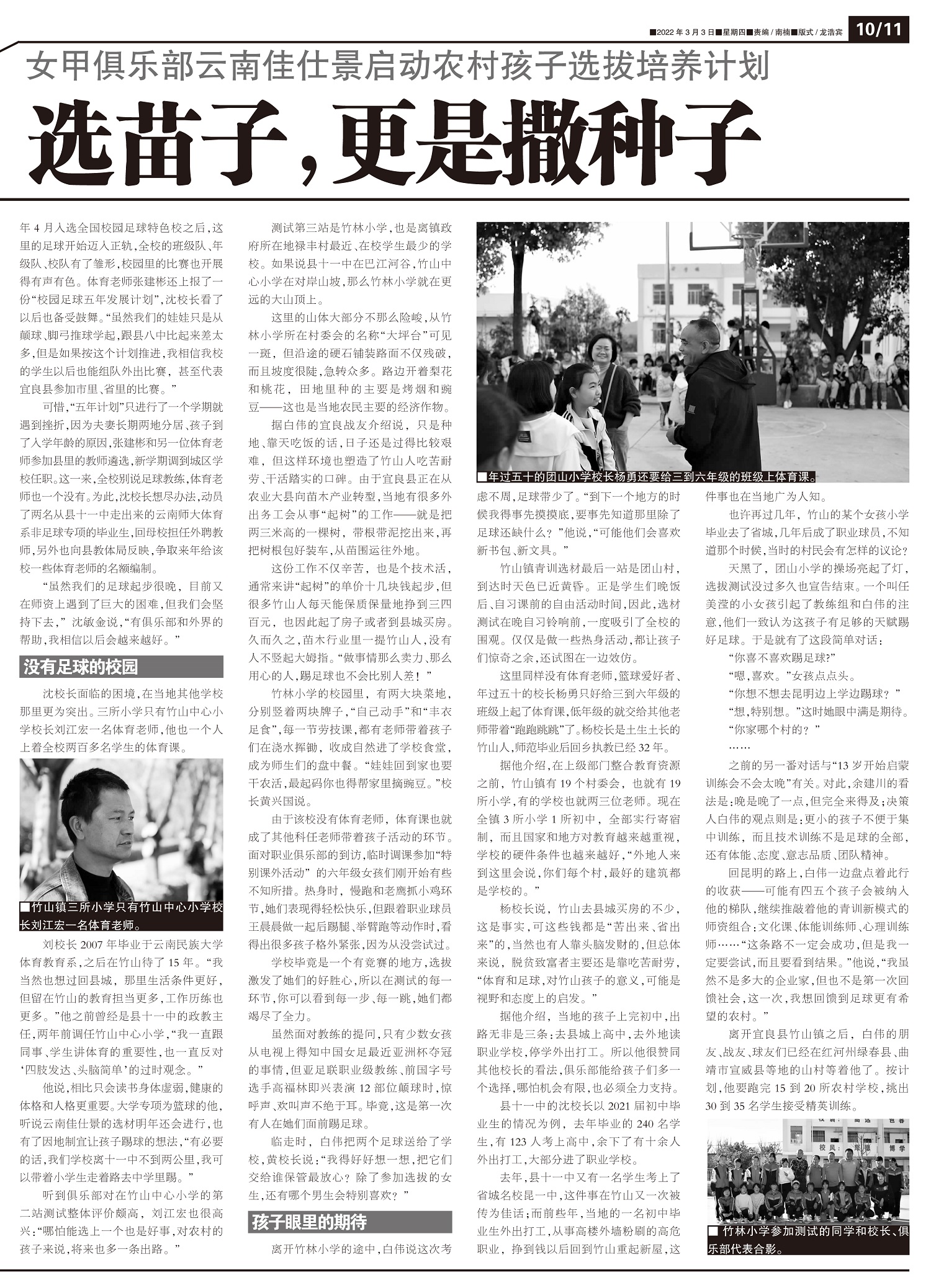 女甲俱乐部云南佳仕景启动农村孩子选拔培养计划 职业队走进大山乡村,选苗子,更是撒种子