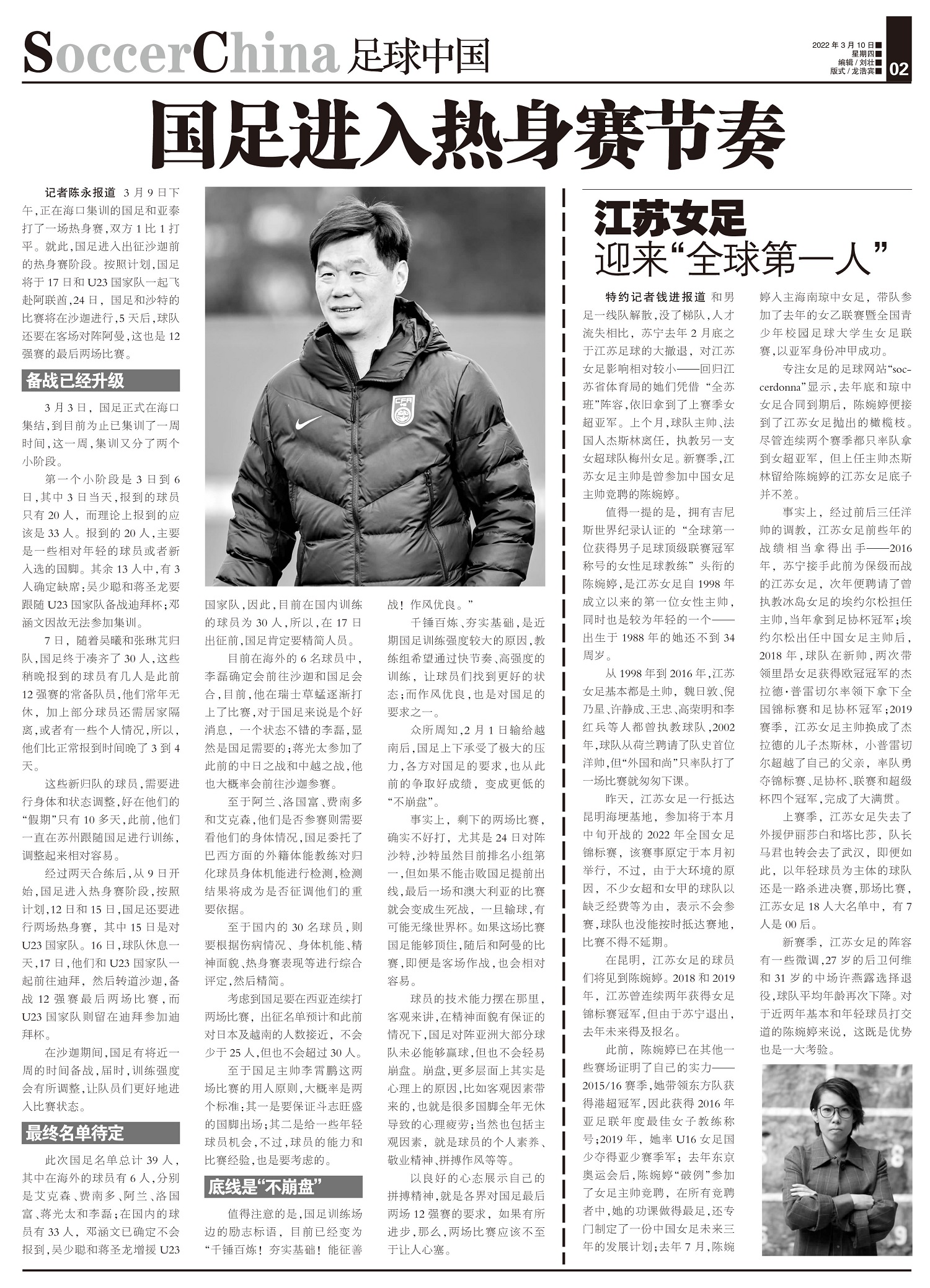 江苏女足 迎来“全球第一人”