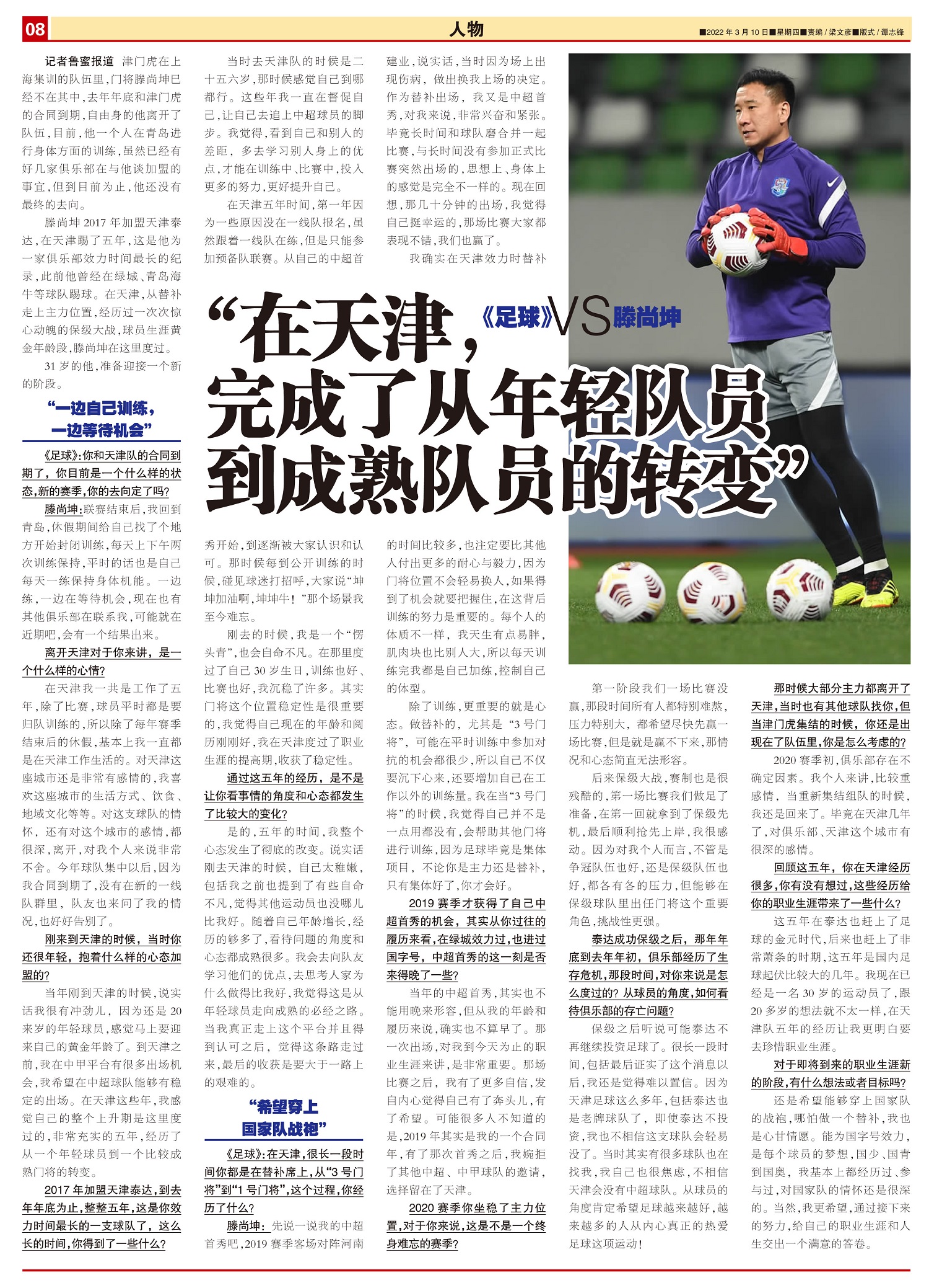 《足球》VS滕尚坤 “在天津,完成了从年轻队员到成熟队员的转变”