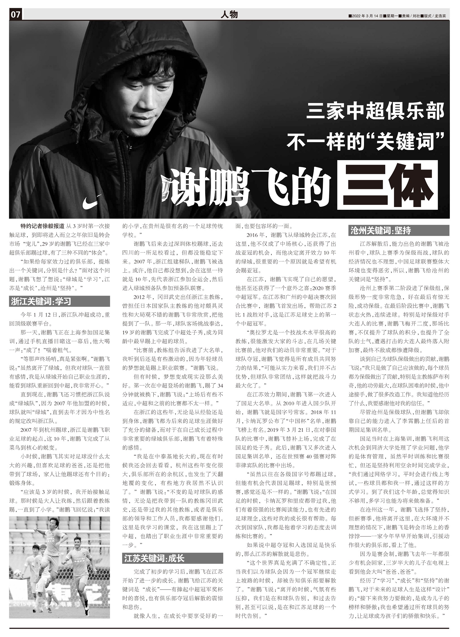 从3岁时第一次接触足球,到即将进入而立之年依旧是转会市场“宠儿”,29岁的谢鹏飞已经在三家中超俱乐部...