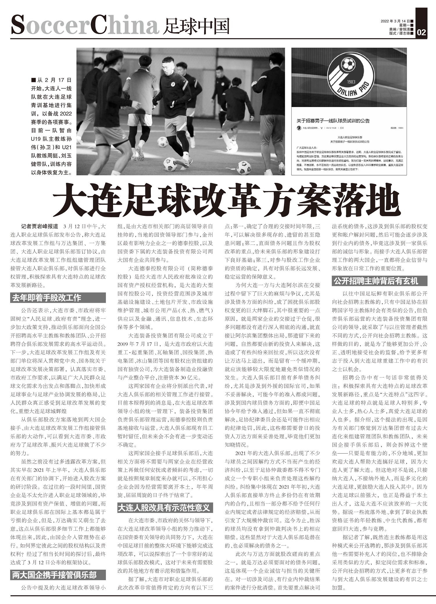 2022年3月12日中午,大连人足球俱乐部官宣了一条股权交接的消息:“目前,大连足球改革发展工作组与...
