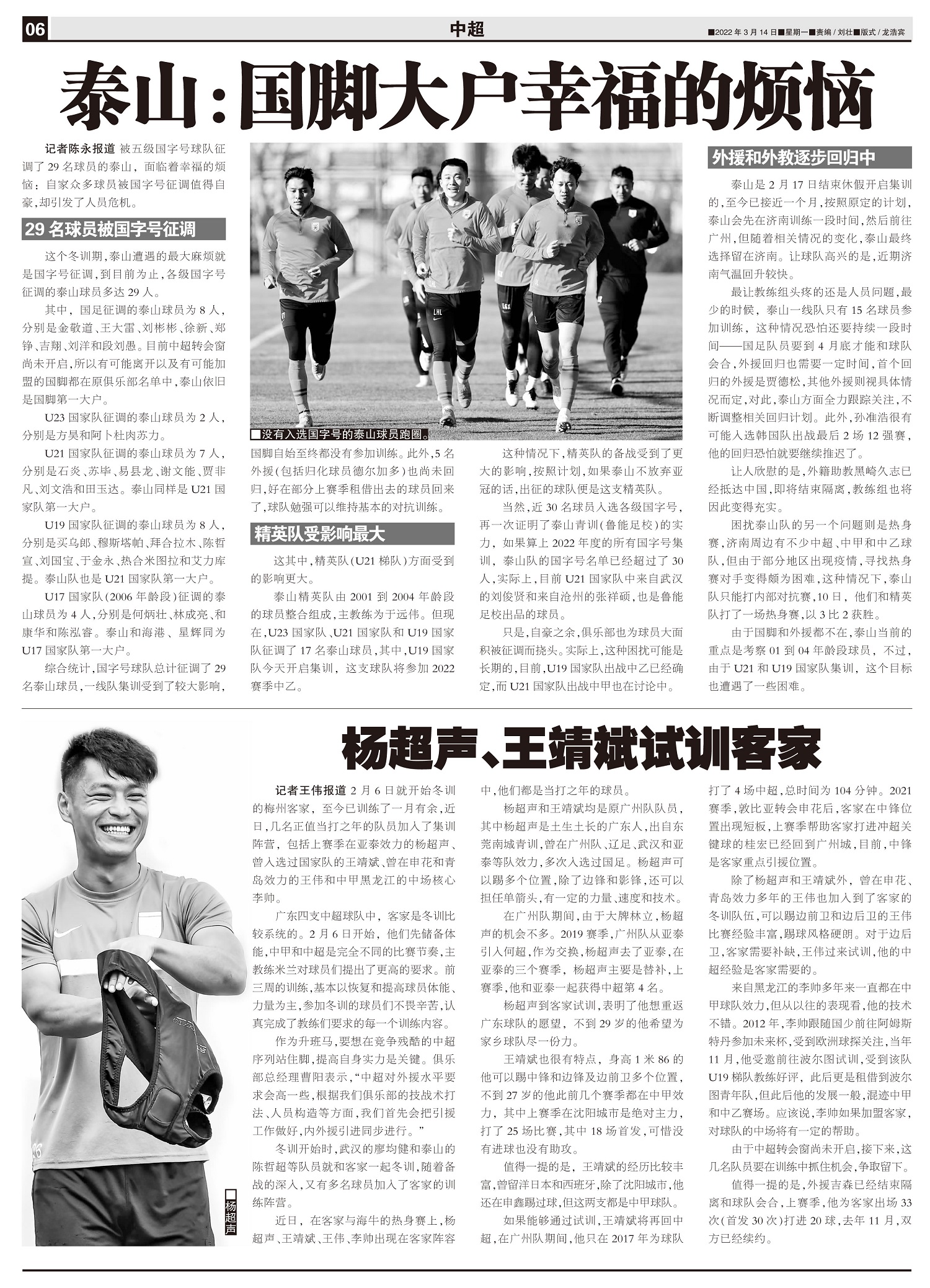 被五级国字号球队征调了29名球员的泰山,面临着幸福的烦恼:自家众多球员被国字号征调值得自豪,却引发了...