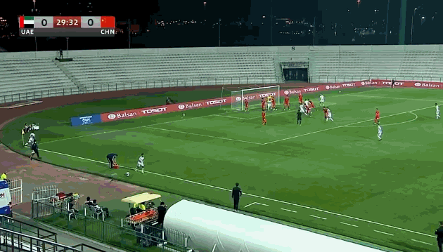 丢球来自第30分钟的一次门前乱战。阿联酋队左侧角球开出,U23国足几乎全员退守至禁区之内,但仍被对手在后点抓住起脚机会,随后阿联酋队长哈米斯一脚质量并不算高的低射,弹地后地钻进球门。随后,阿联酋U23仍旧有一两次还算不错的机会,但U23国足整体注意力比较集中,韩佳奇表现也较为活跃,力保球门不失。