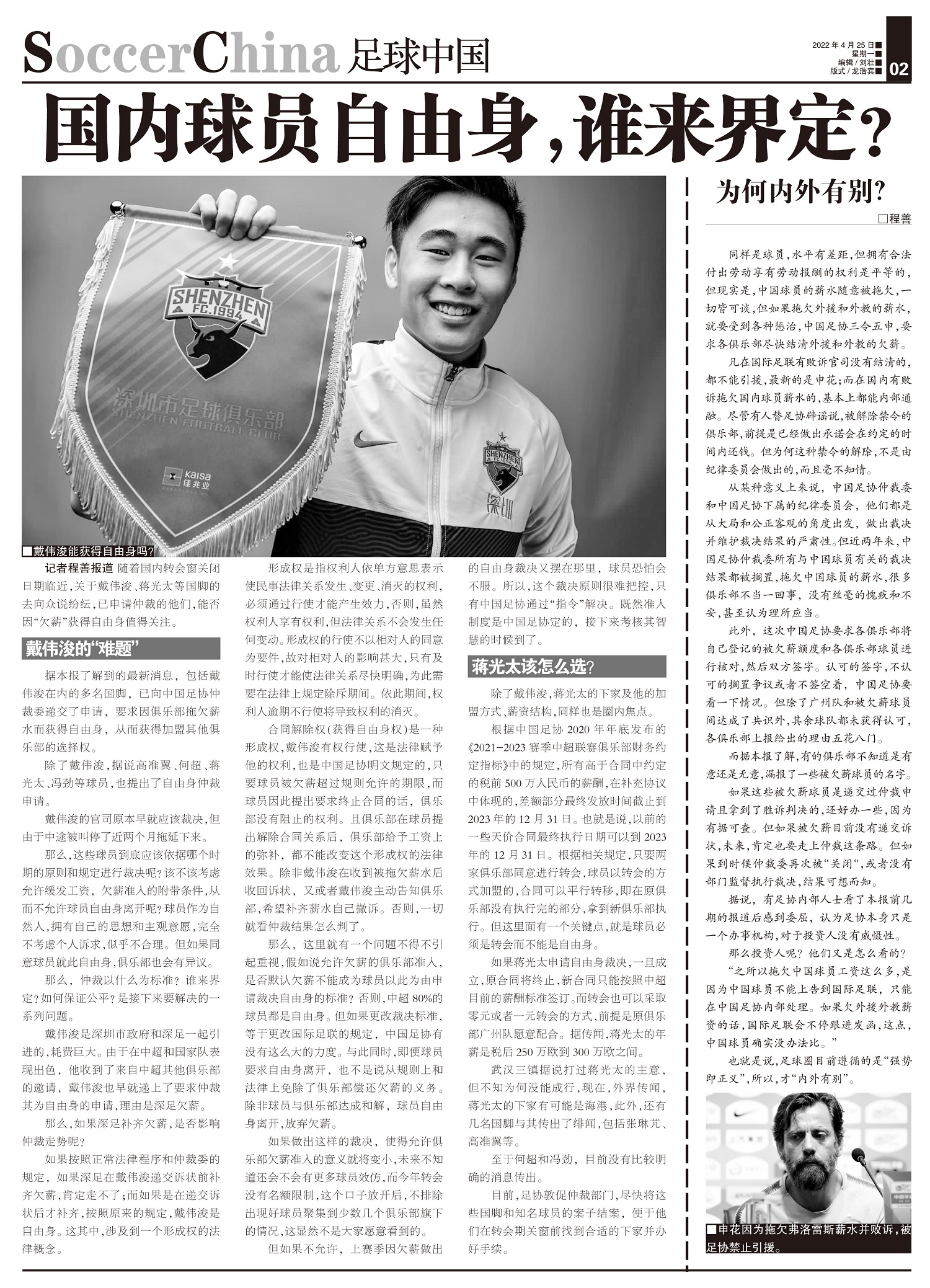 随着国内转会窗关闭日期临近,关于戴伟浚、蒋光太等国脚的去向众说纷纭,已申请仲裁的他们,能否因“欠薪”...
