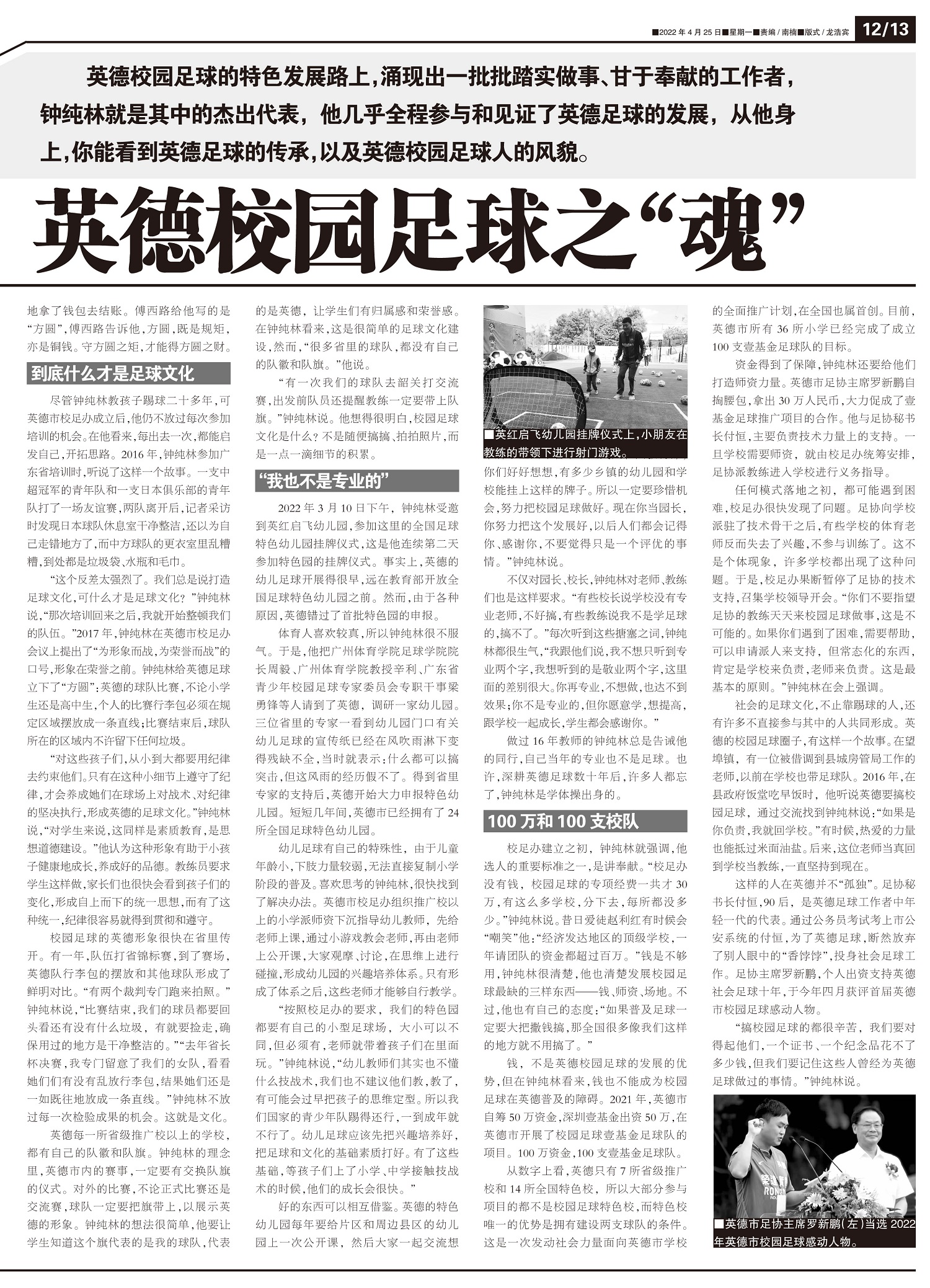 英德校园足球的特色发展路上,涌现出一批批踏实做事、甘于奉献的工作者,钟纯林就是其中的杰出代表,他几乎...