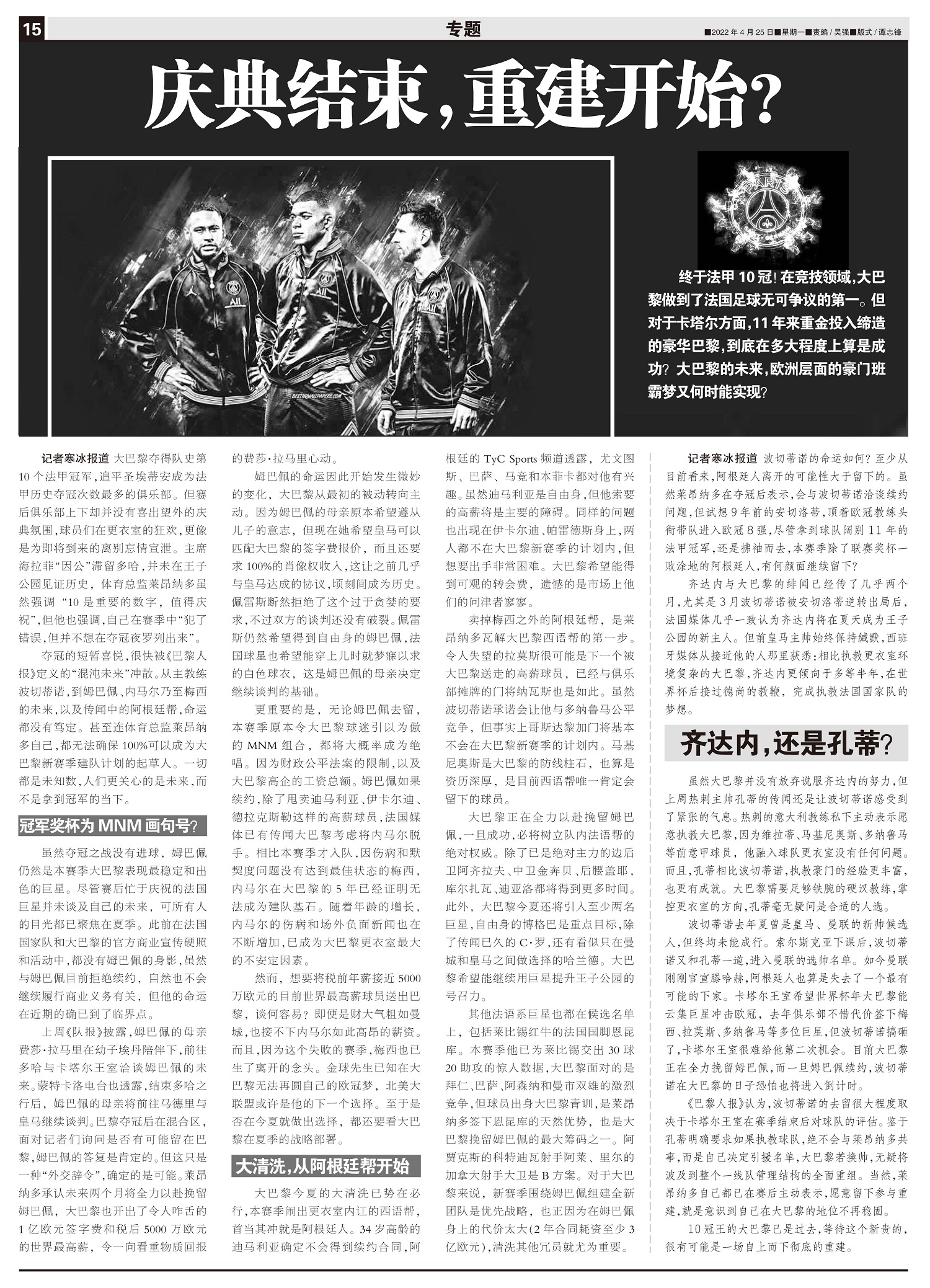 大巴黎夺得队史第10个法甲冠军,追平圣埃蒂安成为法甲历史夺冠次数最多的俱乐部。但赛后俱乐部上下却并没...