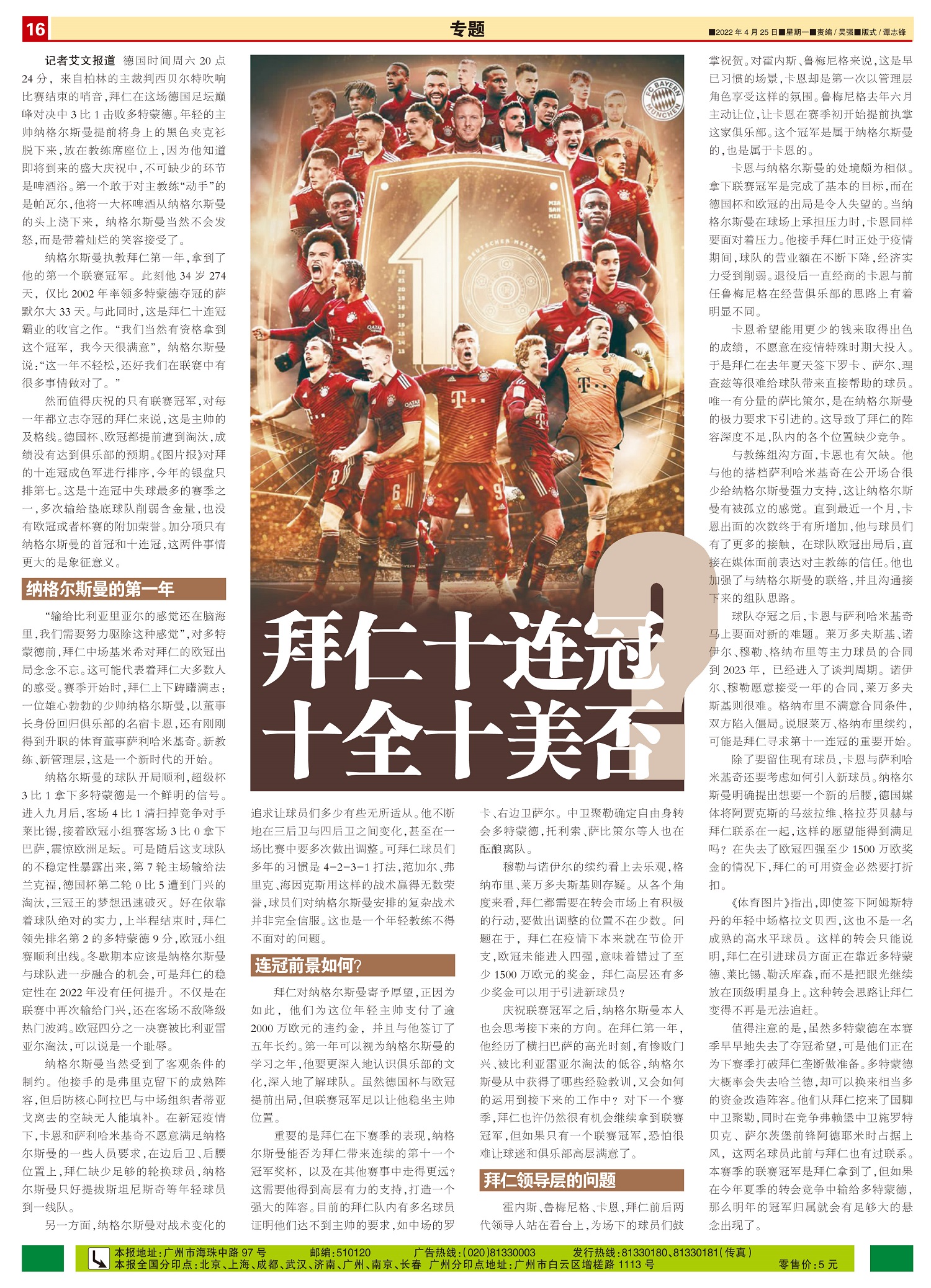 拜仁十连冠 十全十美否?