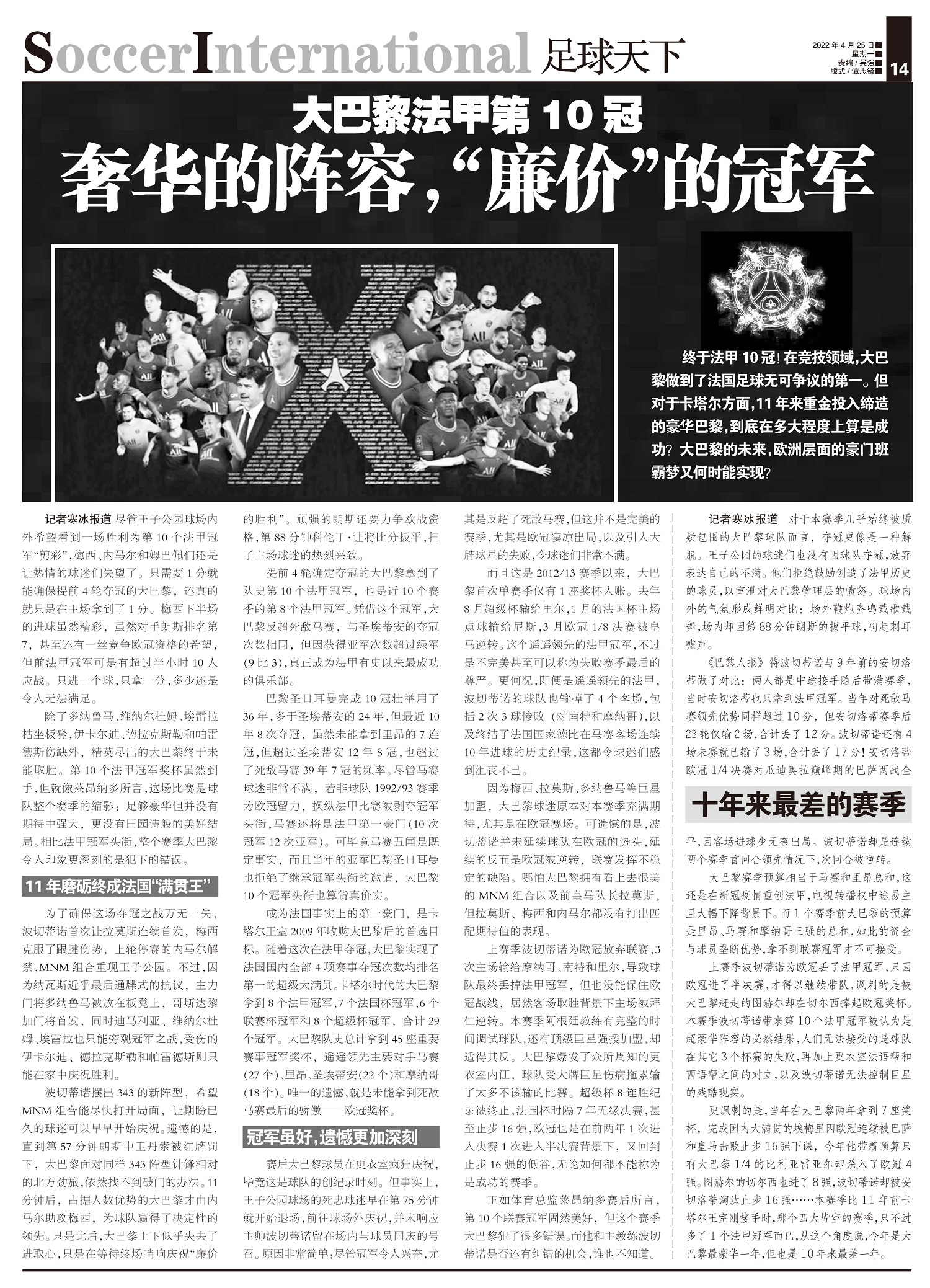 大巴黎法甲第10冠 奢华的阵容,“廉价”的冠军