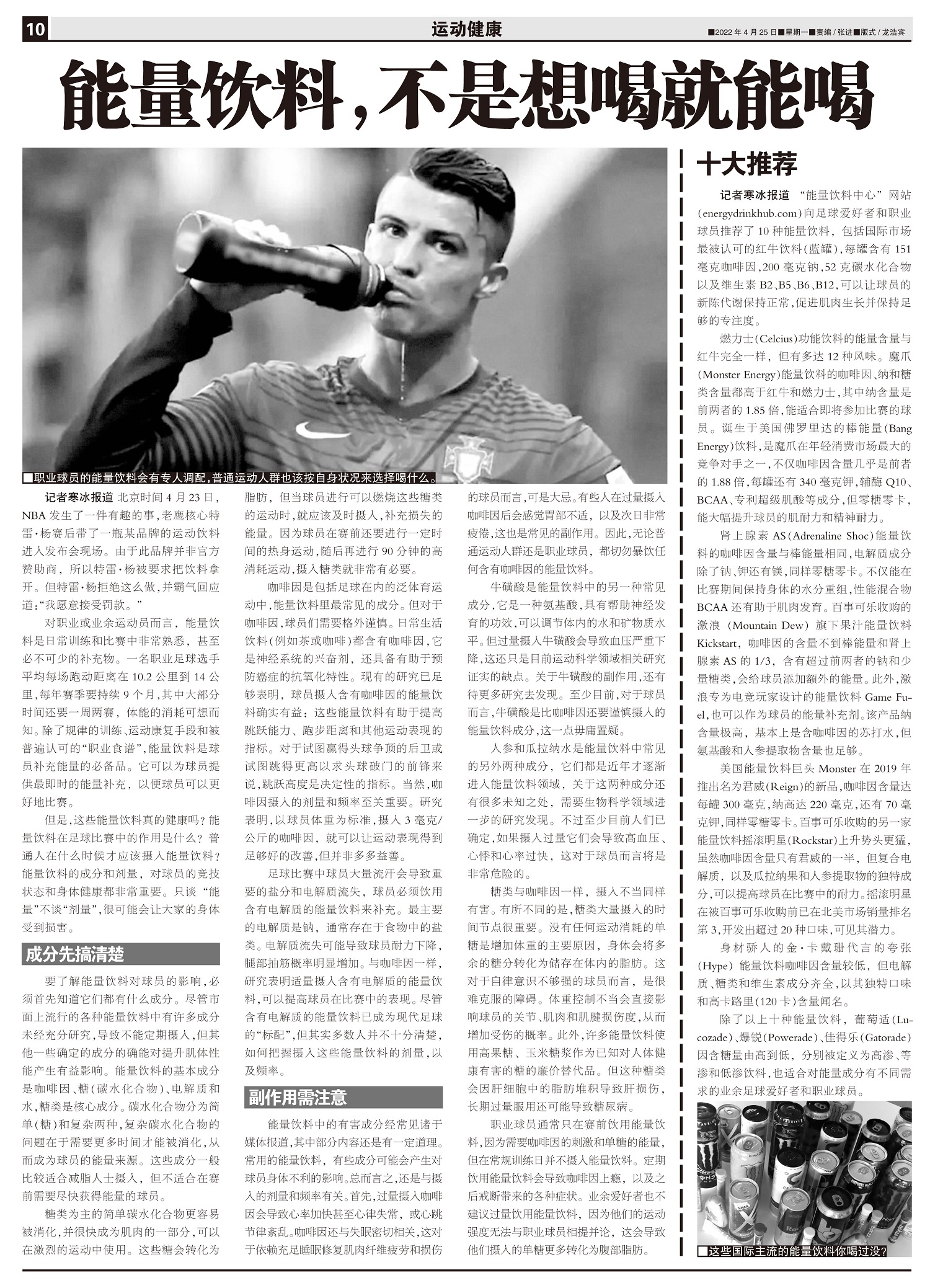 “能量饮料中心”网站(energydrinkhub.com)向足球爱好者和职业球员推荐了10种能量饮...