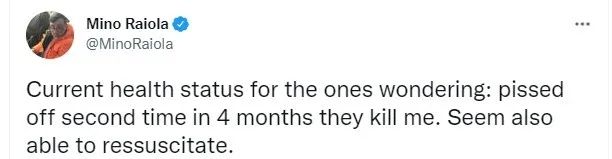 但事情的反转更快:拉伊奥拉的经纪公司公开辟谣,挚友和亲人否认死讯,拉伊奥拉个人社交媒体账号也现身说法:“他们在4个月内第二次想要杀了我,我的健康状况不错,应该可以康复。”