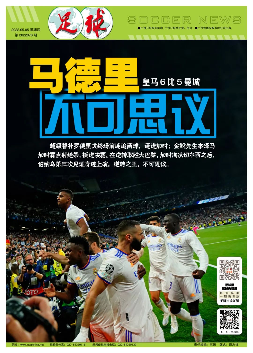 奇迹属于创纪录第5次进入欧冠决赛的安切洛蒂,属于90分钟比赛结束前梅开二度为皇马保留了希望的罗德里戈,属于射入点球将皇马送到决赛场地巴黎,几乎可以触摸到金球奖的本泽马……算上伤停补时短短不到10分钟,连入3球完成超级大逆转的皇马,的确比屡屡错失良机的曼城,更配得上与利物浦争夺欧冠奖杯。