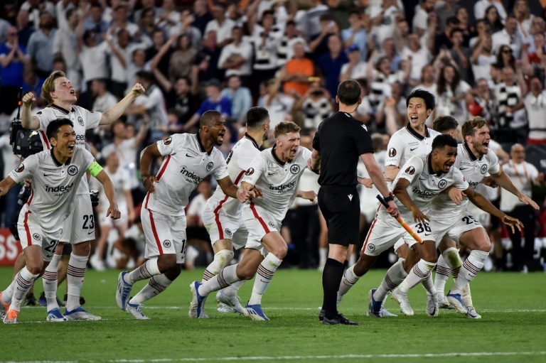 法兰克福与格拉斯哥流浪者,双方在点球大战中踢出10次点球,拉姆塞的第9罚被特拉普挡住。这一瞬间,历史达成,法兰克福用极具戏剧性的方式赢得2022年的欧联杯冠军。毫无疑问,对很多球员来说,这是自我救赎的过程:三年前的欧联杯半决赛中,他们在斯坦福桥点球大战中输给切尔西,黯然出局。这一次他们的结果要好得多。
