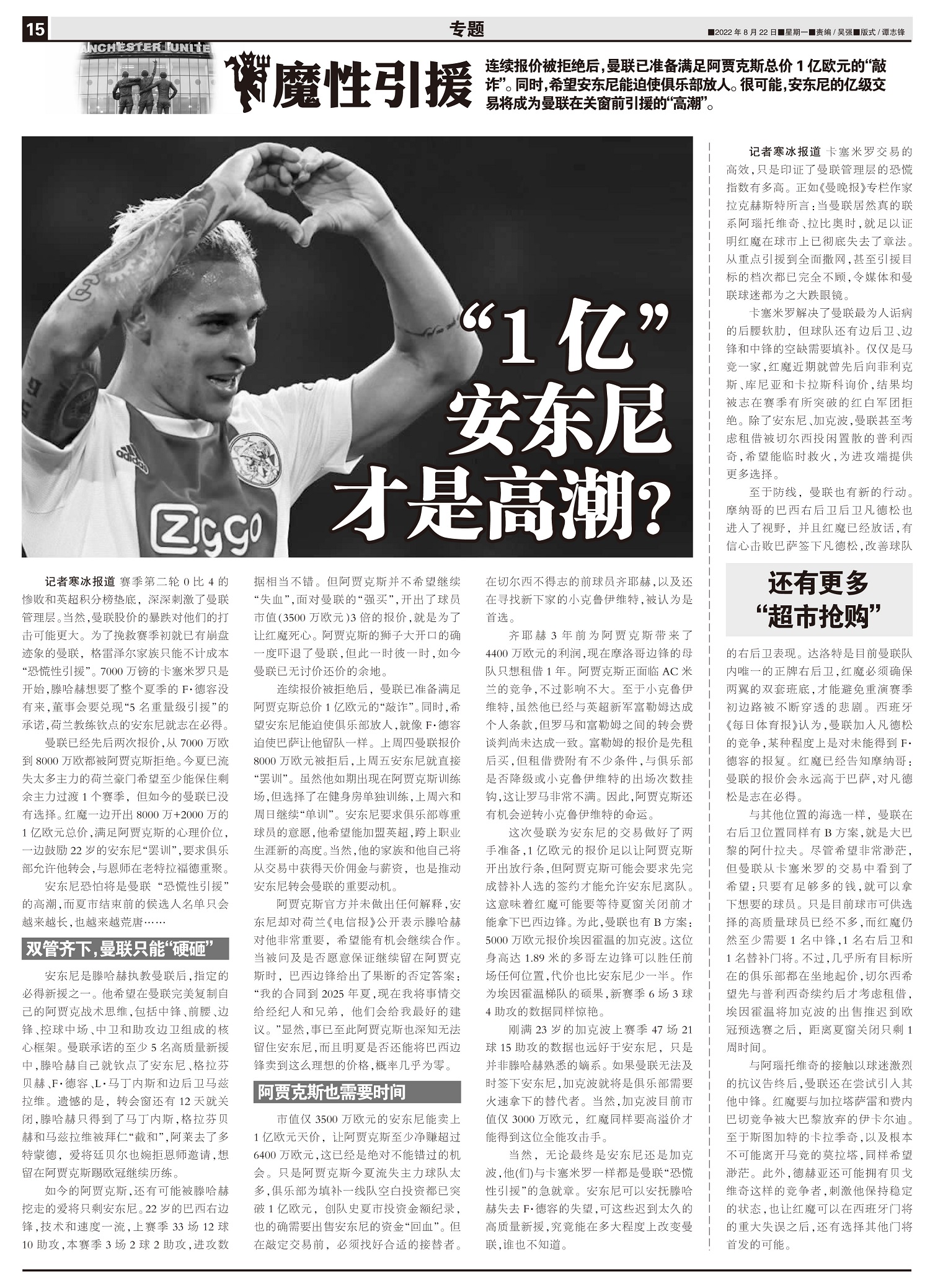 魔性引援连续报价被拒绝后,曼联已准备满足阿贾克斯总价1亿欧元的“敲诈”。同时,希望安东尼能迫使俱乐部...