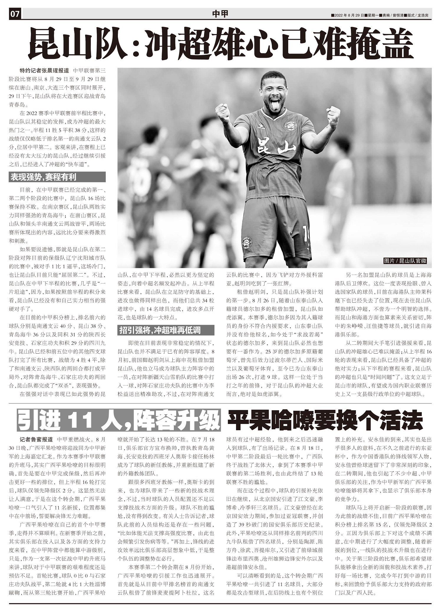 中甲联赛第三阶段比赛将从8月29日至9月29日继续在唐山、南京、大连三个赛区同时展开,29日下午,昆...