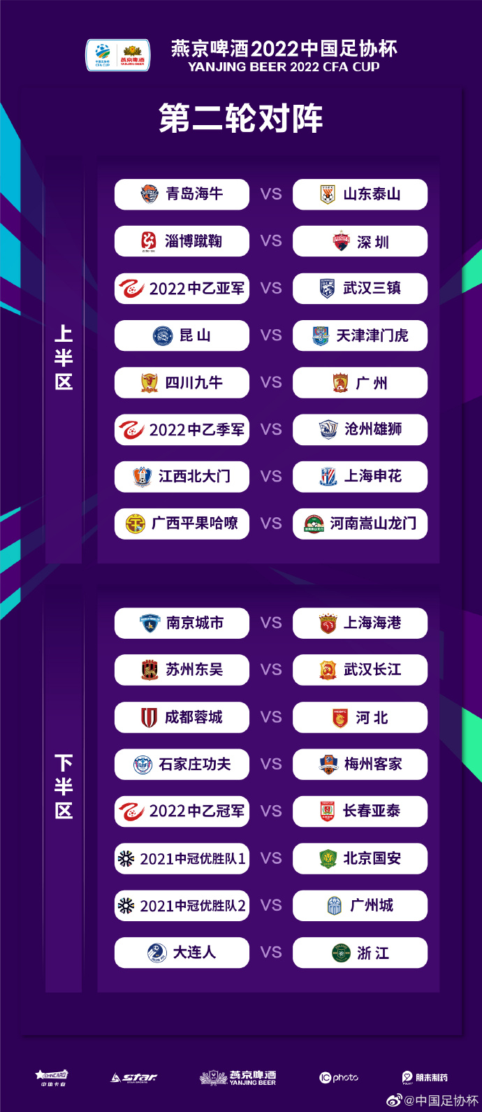需要说明的是,虽然名义上是足协杯第二轮抽签,但实际上是32强的落位抽签,此次抽签之后,后续对阵便完全敲定,不需要再进行抽签。