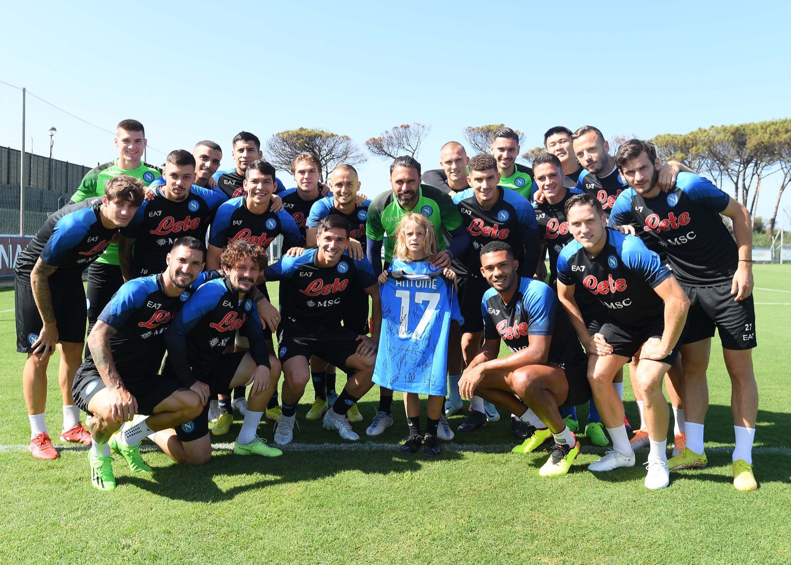 上周五,安托万一家又被邀请到那不勒斯的科乐美训练中心,现场观看全队训练。俱乐部准备了特制的球衣,印有安托万的姓名、出生日期。主帅斯帕莱蒂和一线队球员都在球衣上签名,并与小安托万合影留念,埃尔马斯和安吉萨还与他玩了传球游戏。那不勒斯官方推特录制了视频上传,得到不少球迷的热烈评论和点赞。