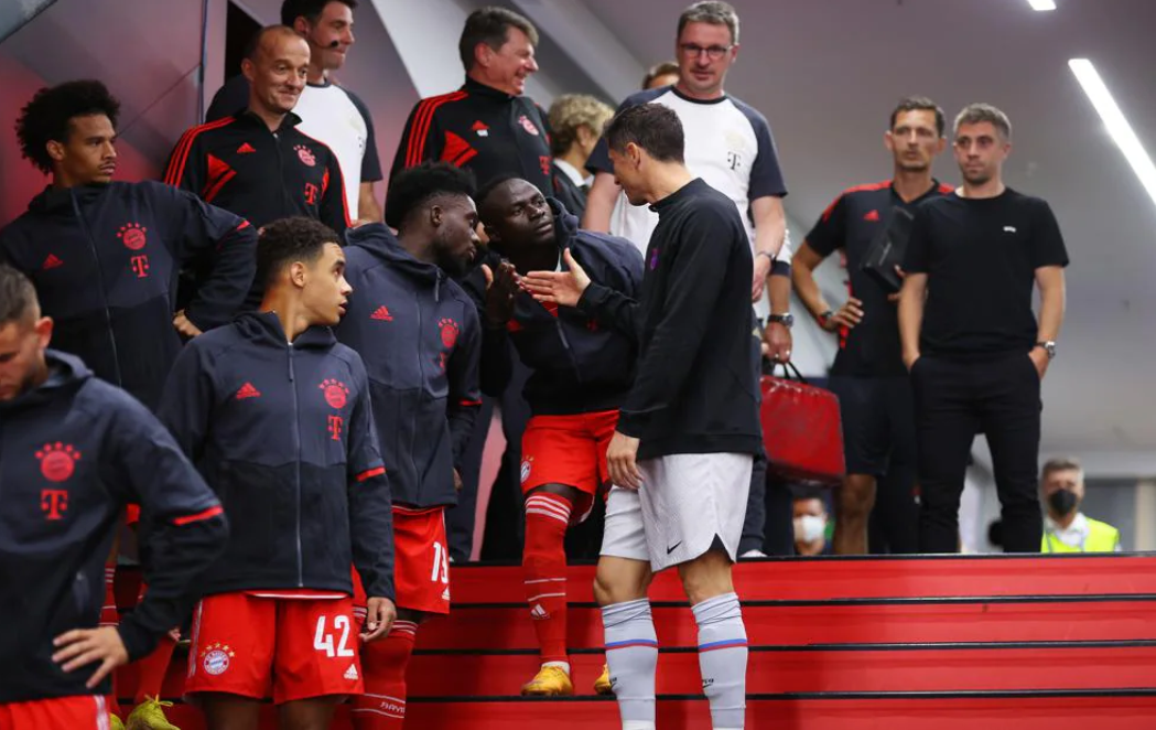 时隔4个月重返安联球场,莱万百感交集。爆满的安联球场迎接他的是掌声和欢呼,感谢莱万为拜仁攻入的344个进球,赢得的19座奖杯。莱万赛前逐一拥抱了安联球场工作人员,在球员通道也拥抱了基米希、诺伊尔,与穆勒击掌,一切那么熟悉,却又那么陌生。