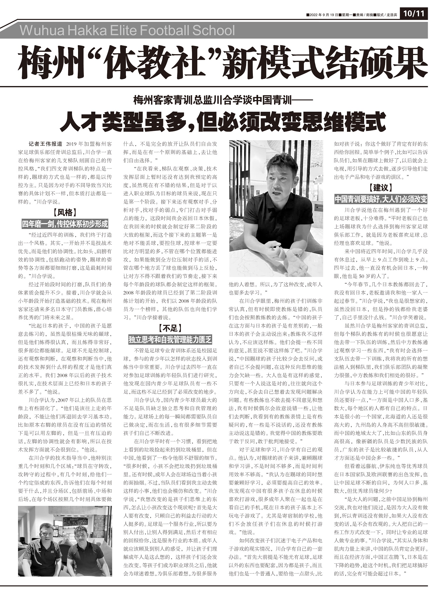 梅州客家青训总监川合学谈中国青训—— 人才类型虽多,但必须改变思维模式