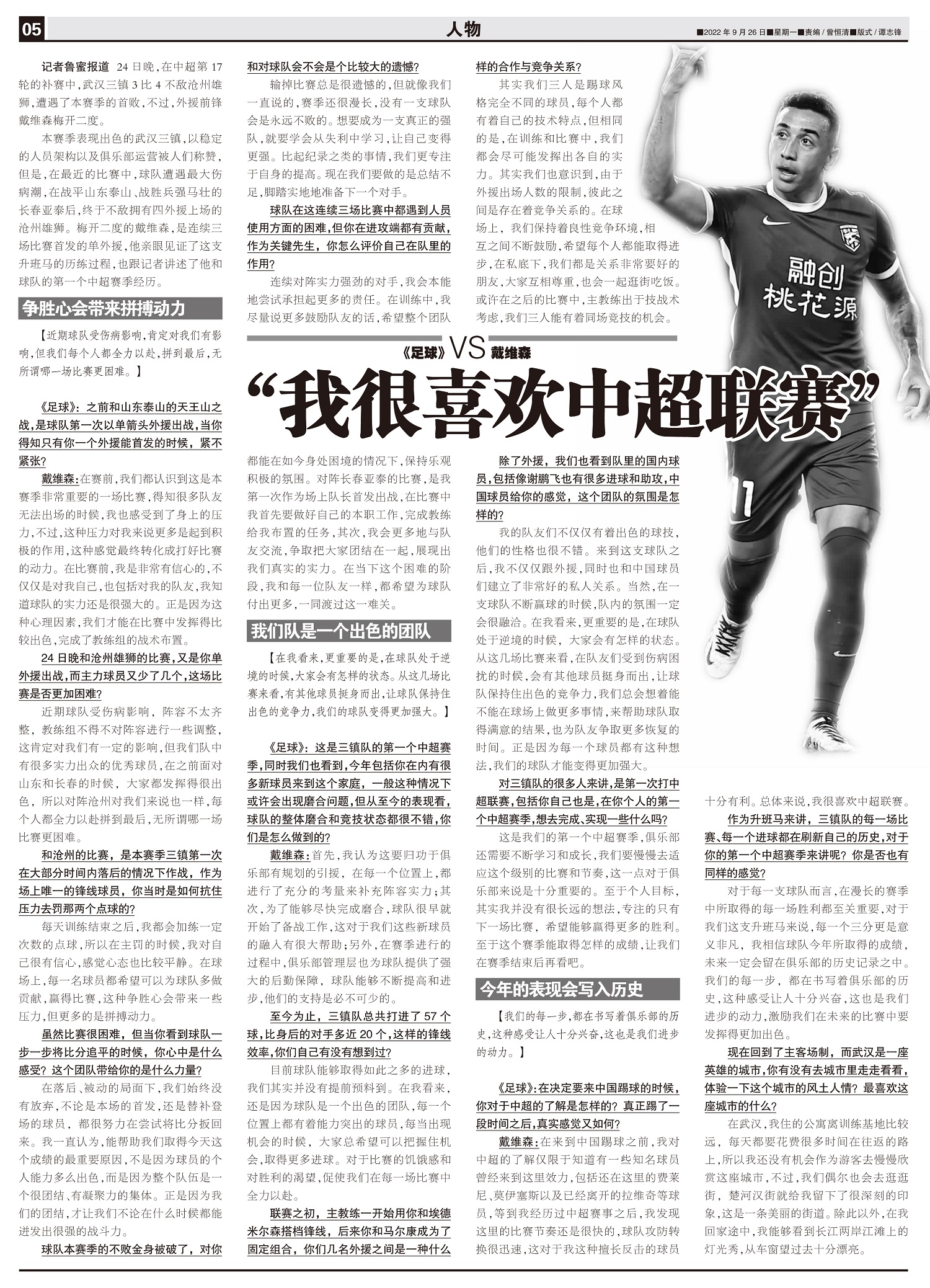 《足球》VS戴维森 “我很喜欢中超联赛”